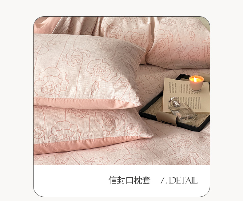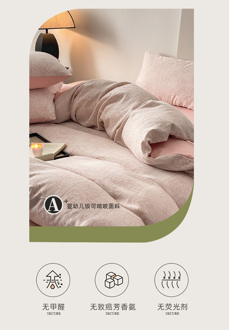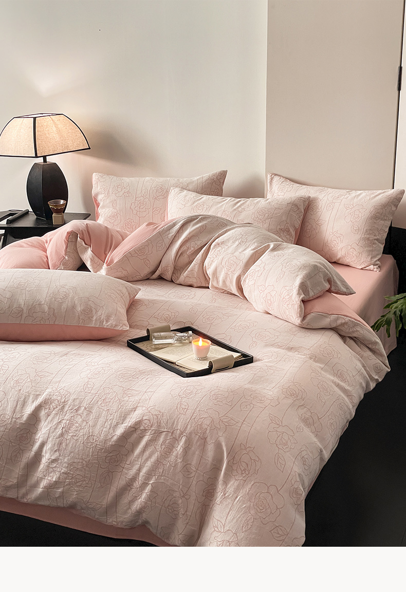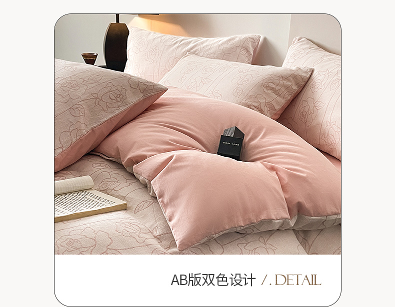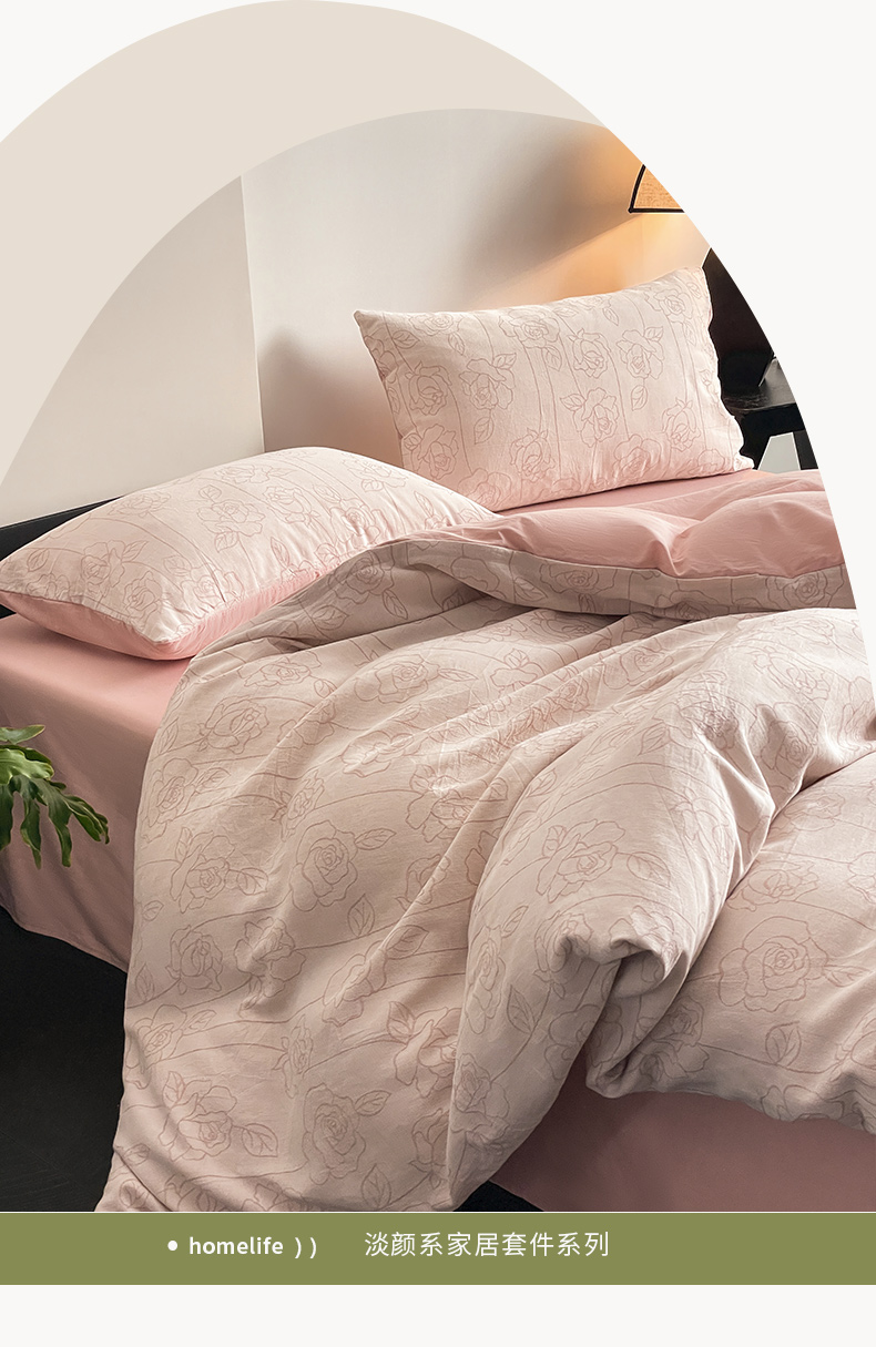 商品名称:ab家纺 2024新款全棉三层纱提花四件套系列-玫瑰 玫瑰粉