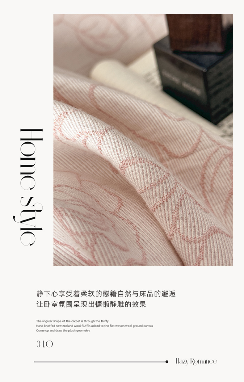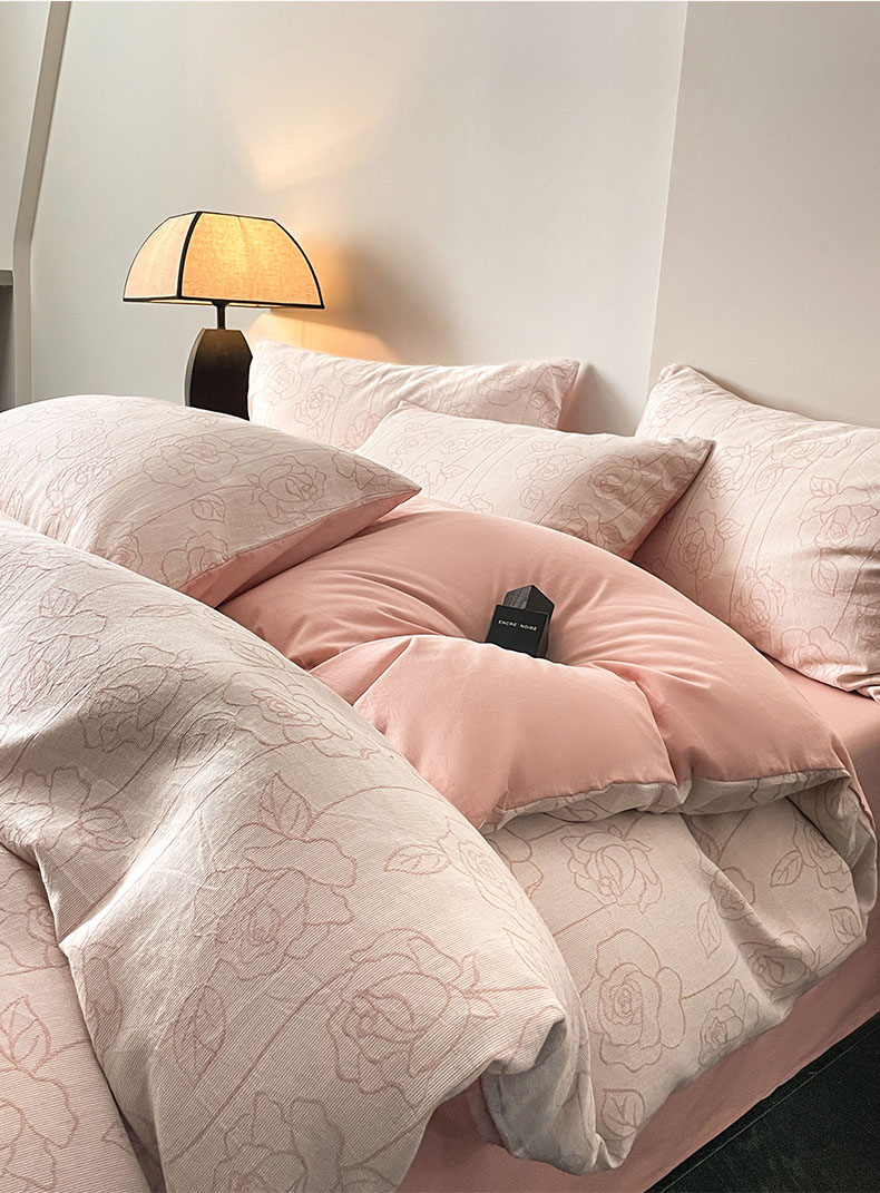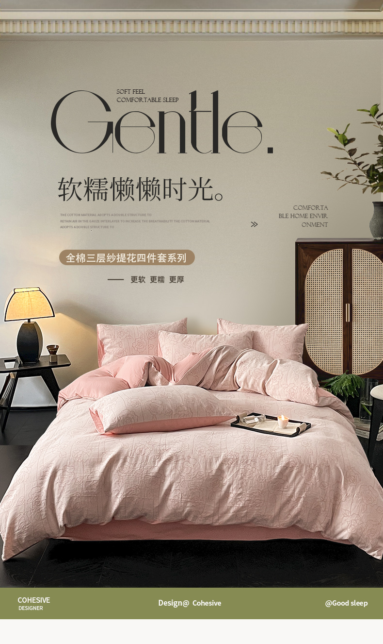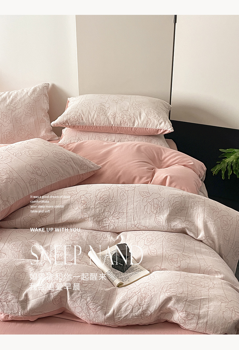 商品名称:ab家纺 2024新款全棉三层纱提花四件套系列-玫瑰 玫瑰粉
