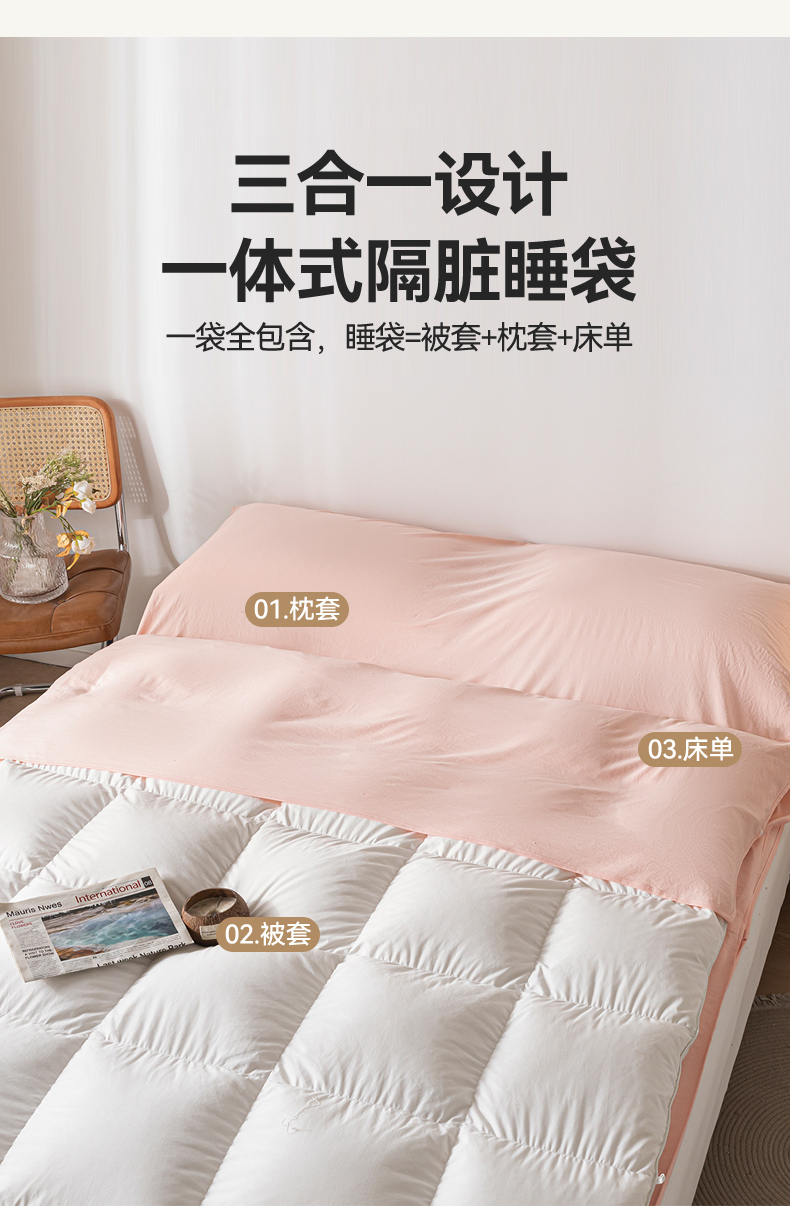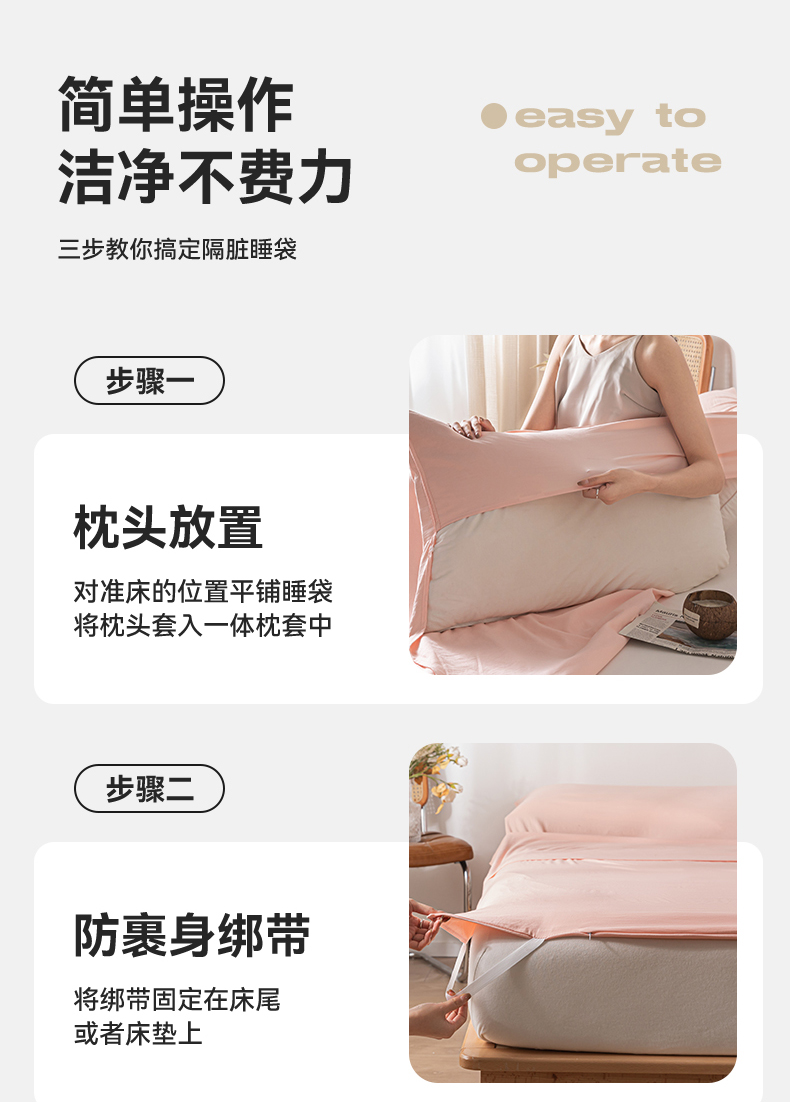 商品名称:古吉梦 2024新款水洗棉隔脏睡袋 奶油粉