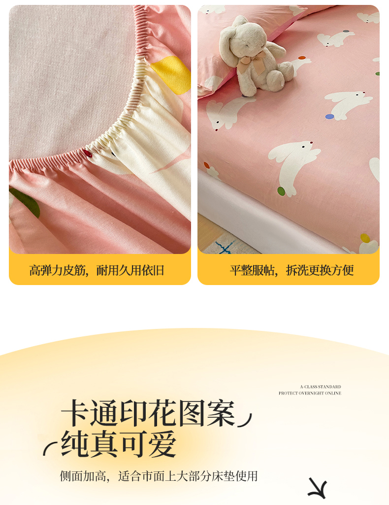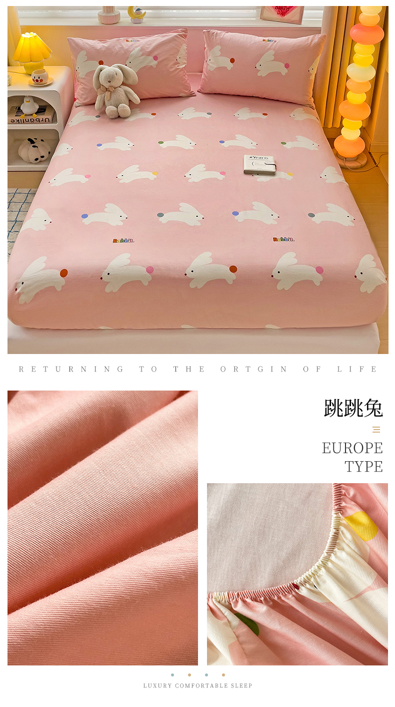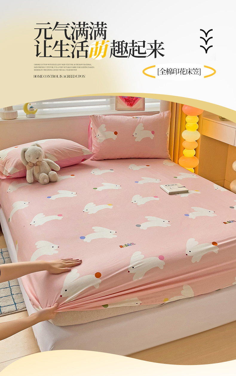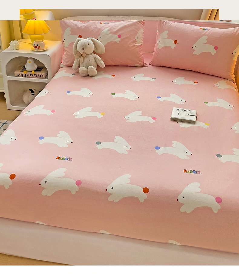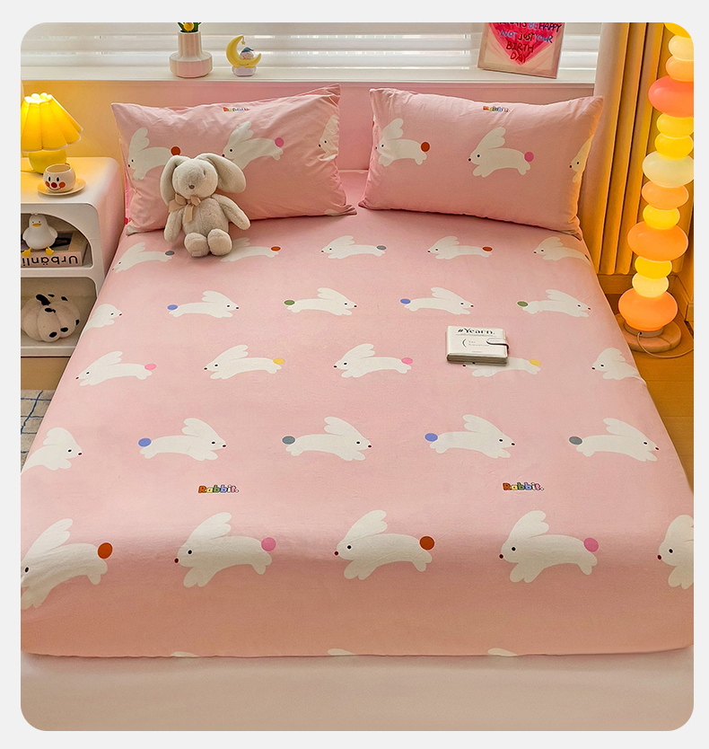 • 91家纺网 家纺一手货源 找家纺 名兮家居 2024新款全棉印花单床笠 跳跳兔