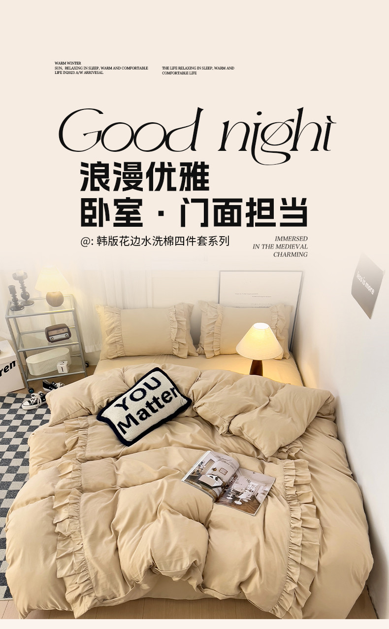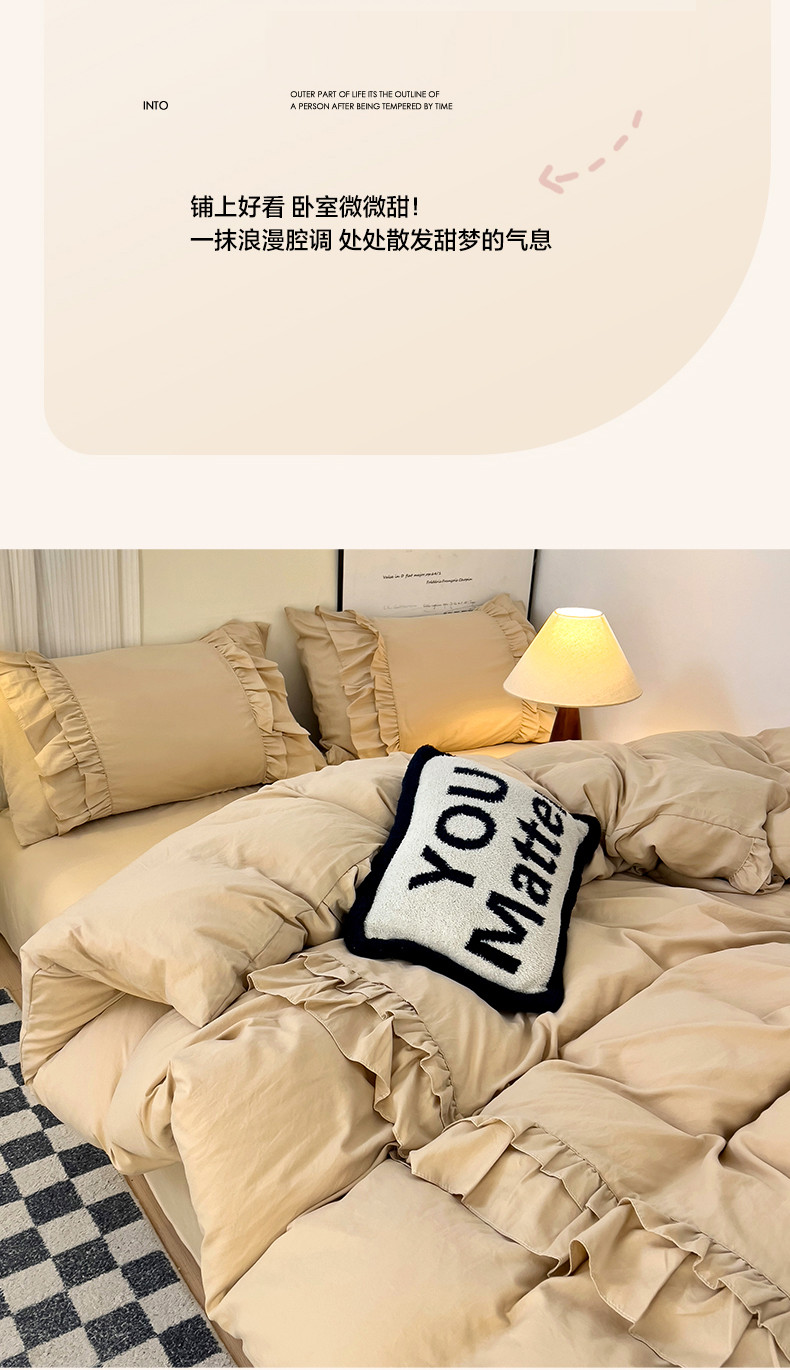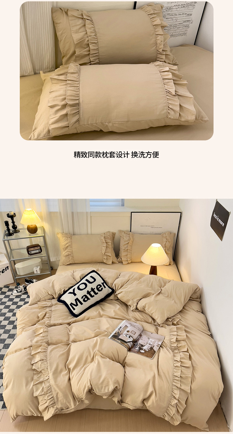 当前位置: 91家纺网 > 商品网购 > 床品套件 > 四件套 > 水洗棉四件套 > 春光里 2024新款韩版花边拼接四件套-贝拉 贝拉-奶茶色