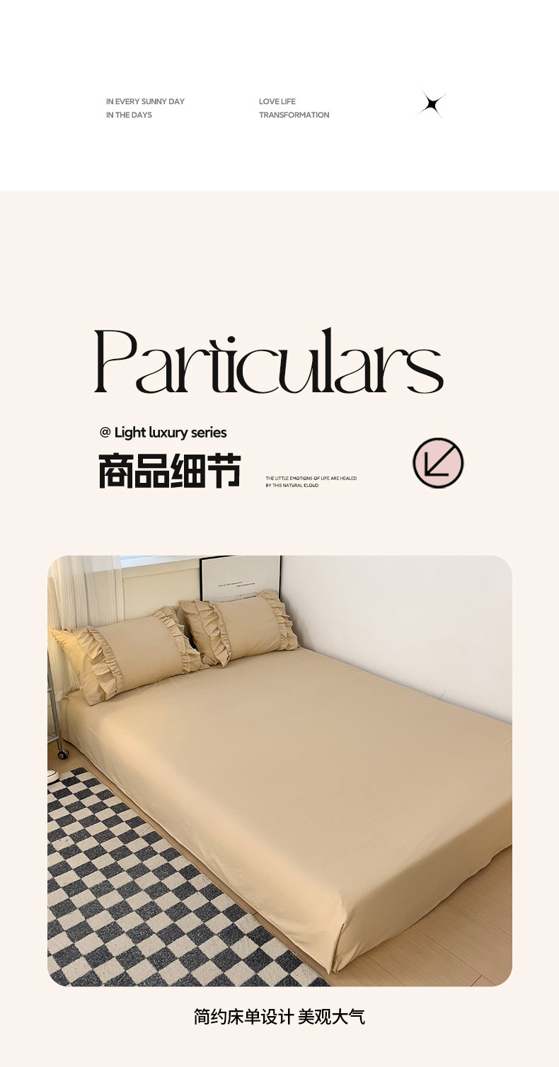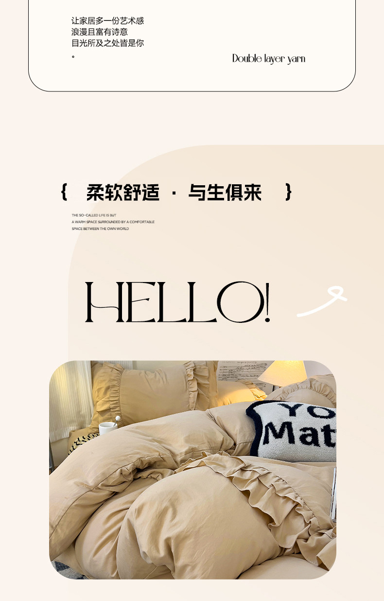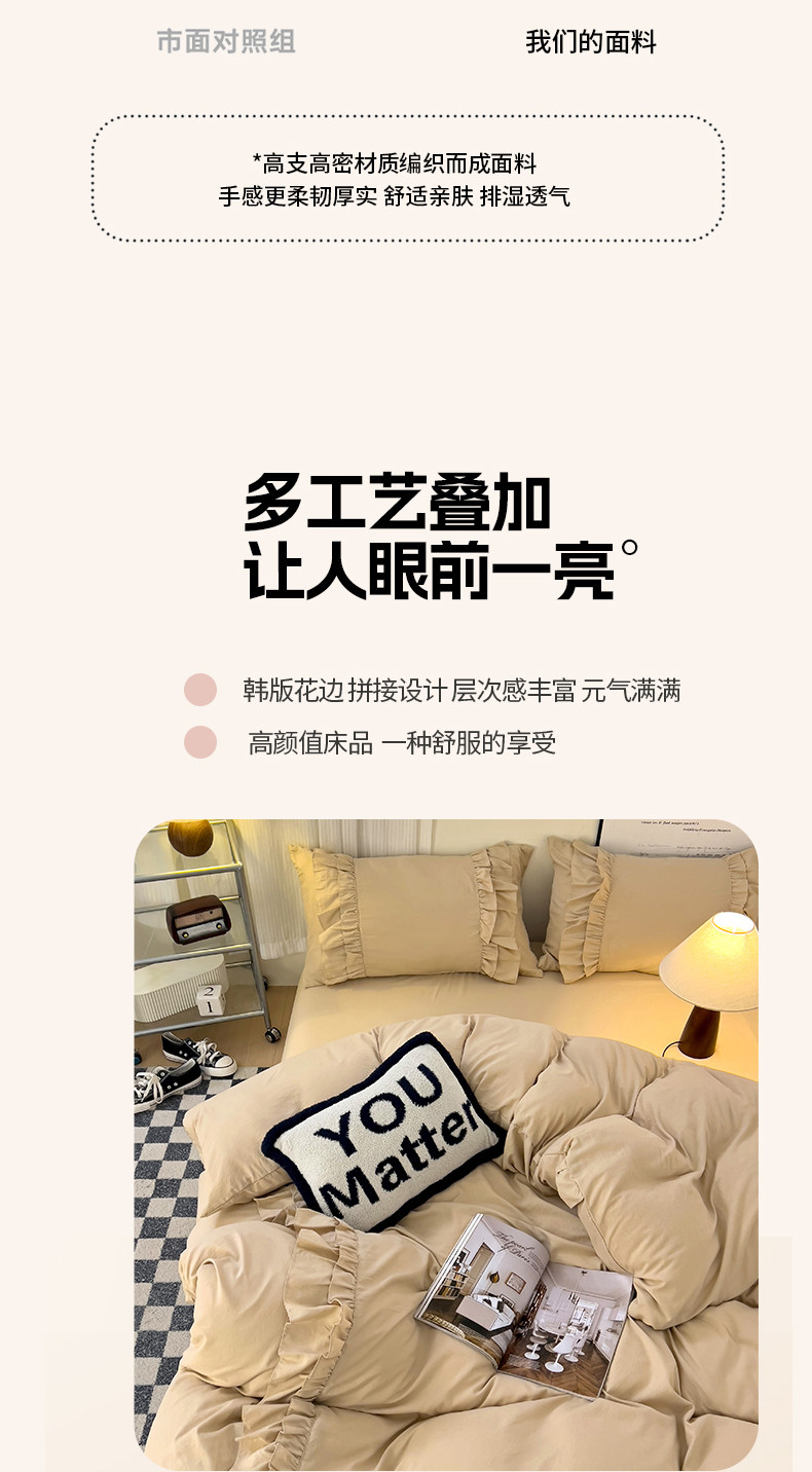 当前位置: 91家纺网 > 商品网购 > 床品套件 > 四件套 > 水洗棉四件套 > 春光里 2024新款韩版花边拼接四件套-贝拉 贝拉-奶茶色