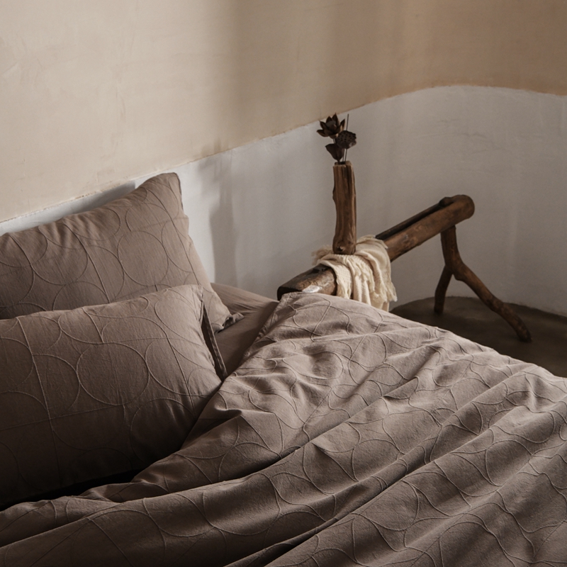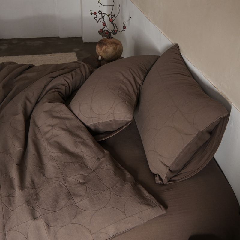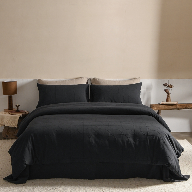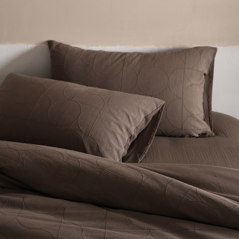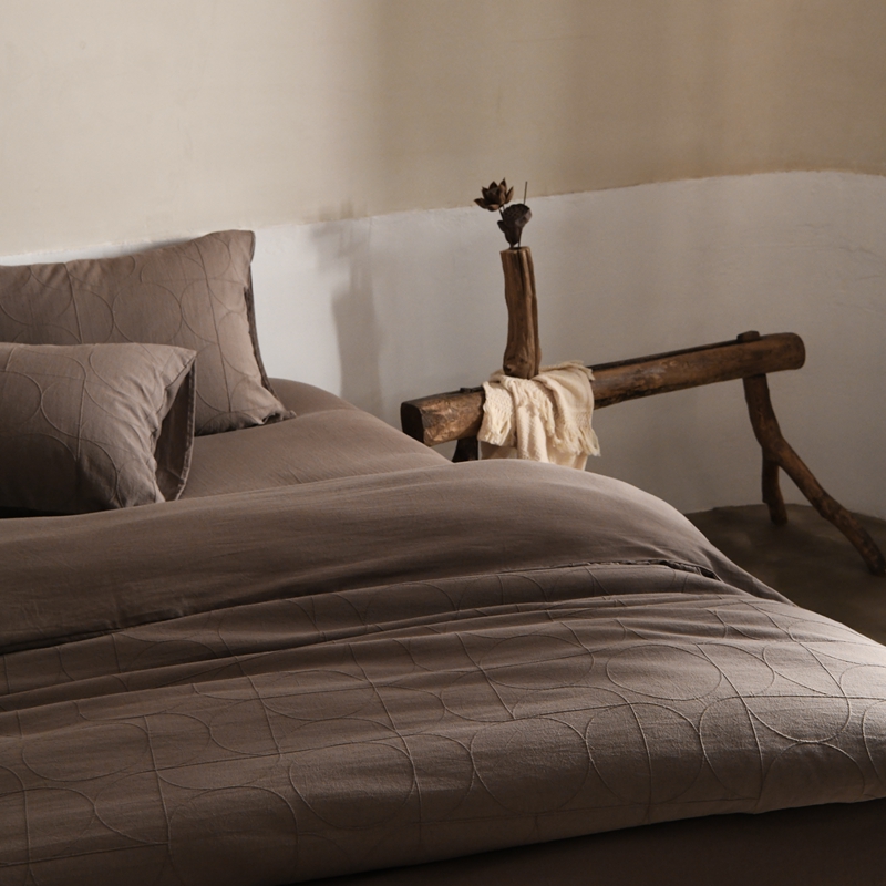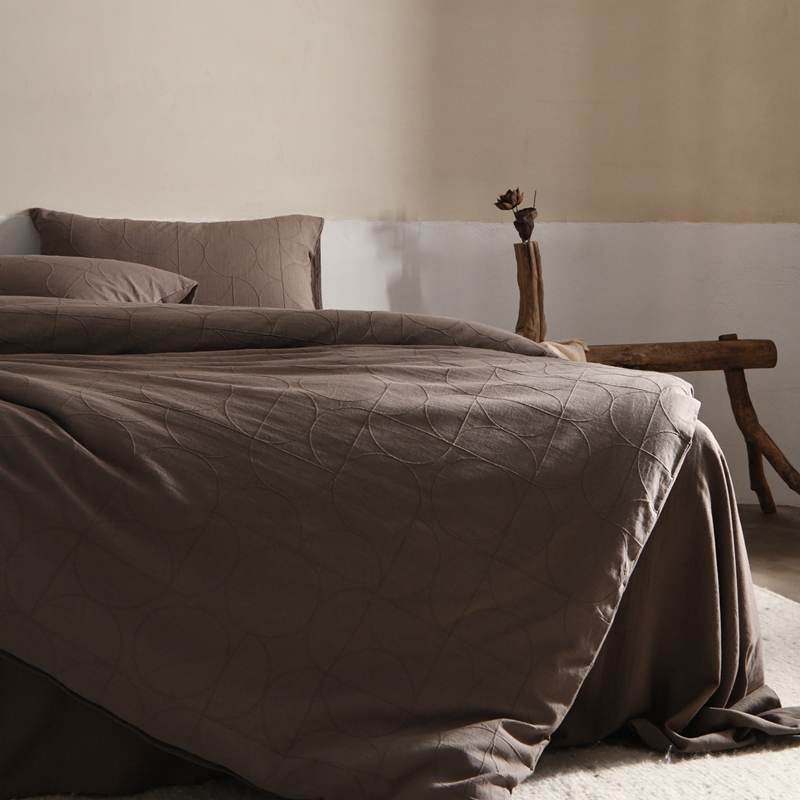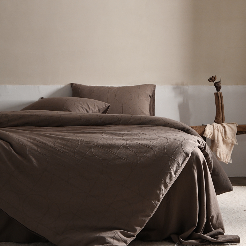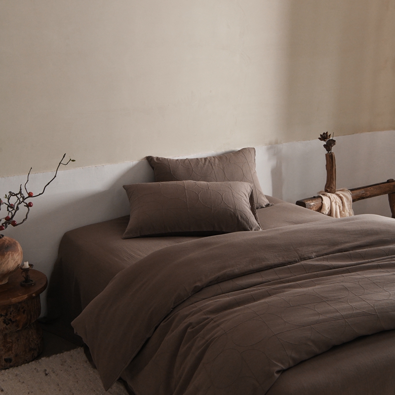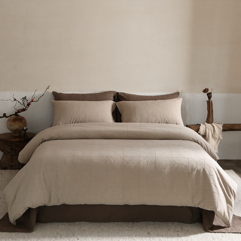 (总)简家居 2025新款亲肤舒适棉麻床盖三件套,棉麻提花