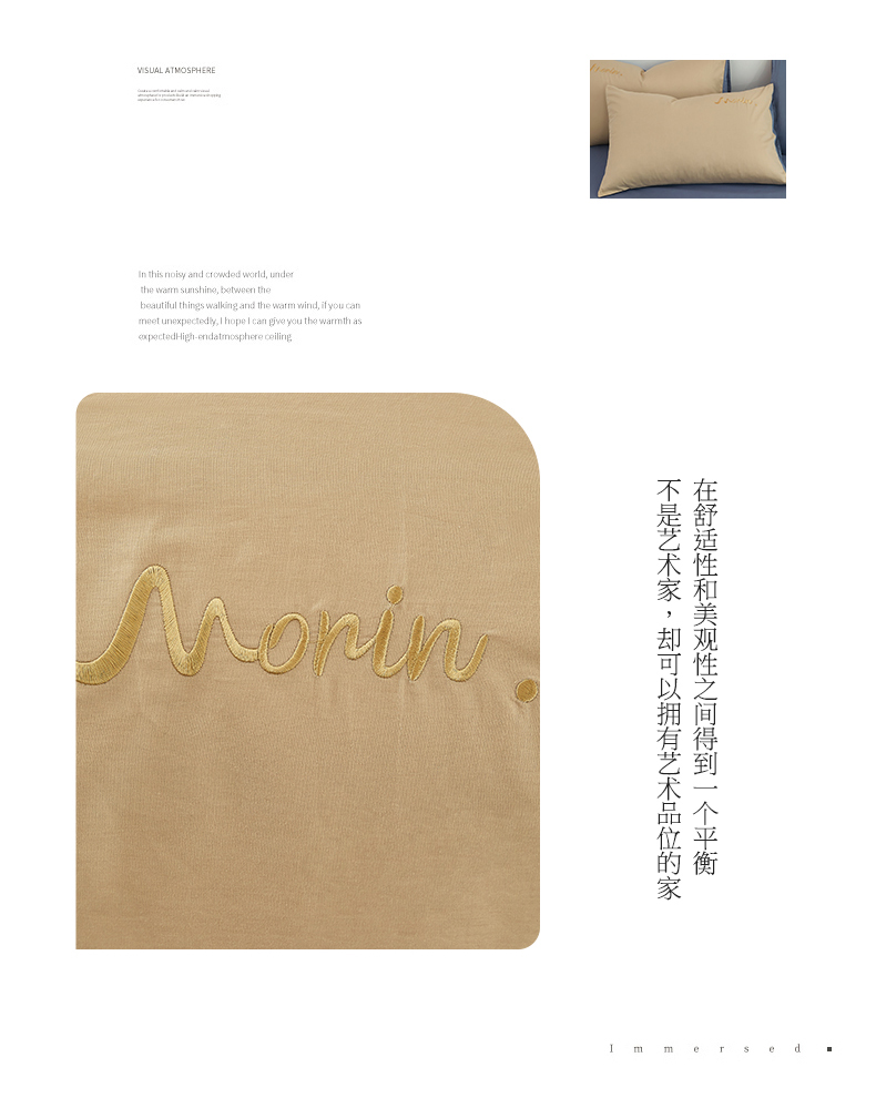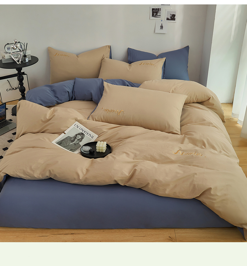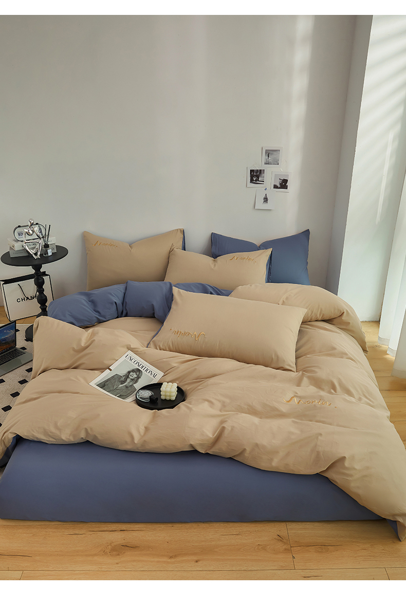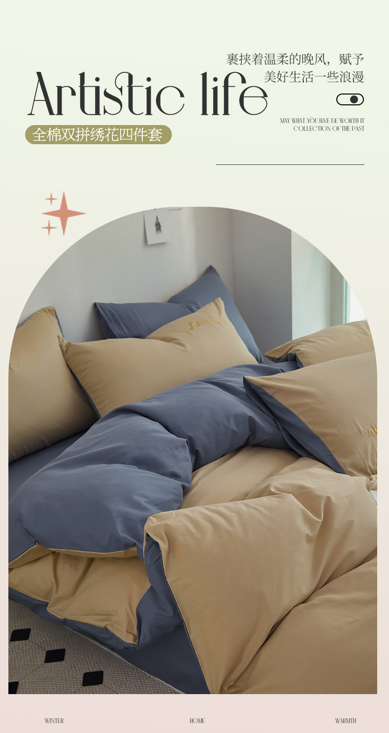 多品家纺 2024新款全棉纯色绣花四件套 浅驼+宝石蓝
