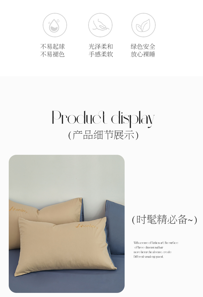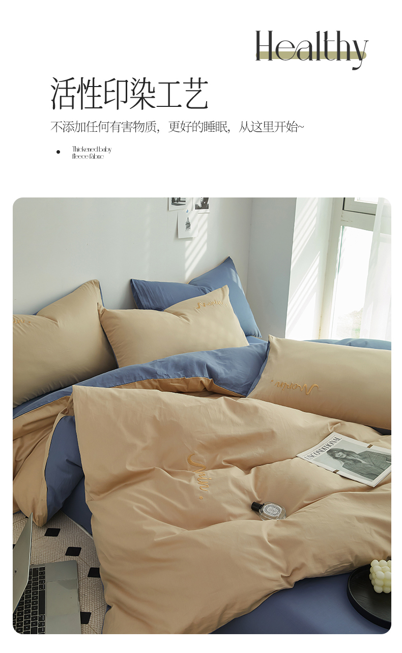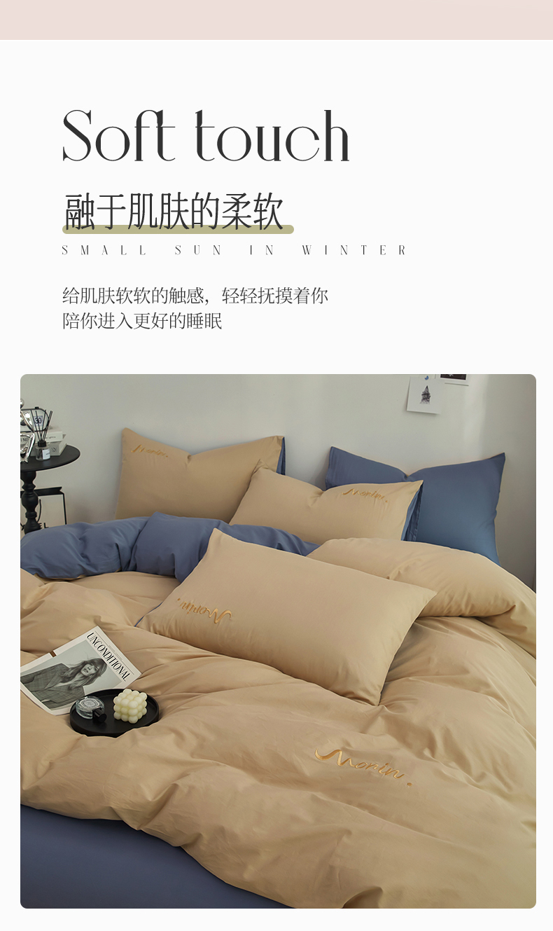 商品名称:多品家纺 2024新款全棉纯色绣花四件套 浅驼+宝石蓝