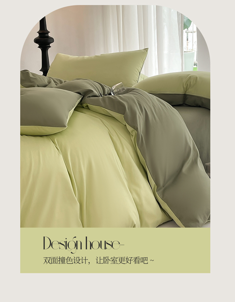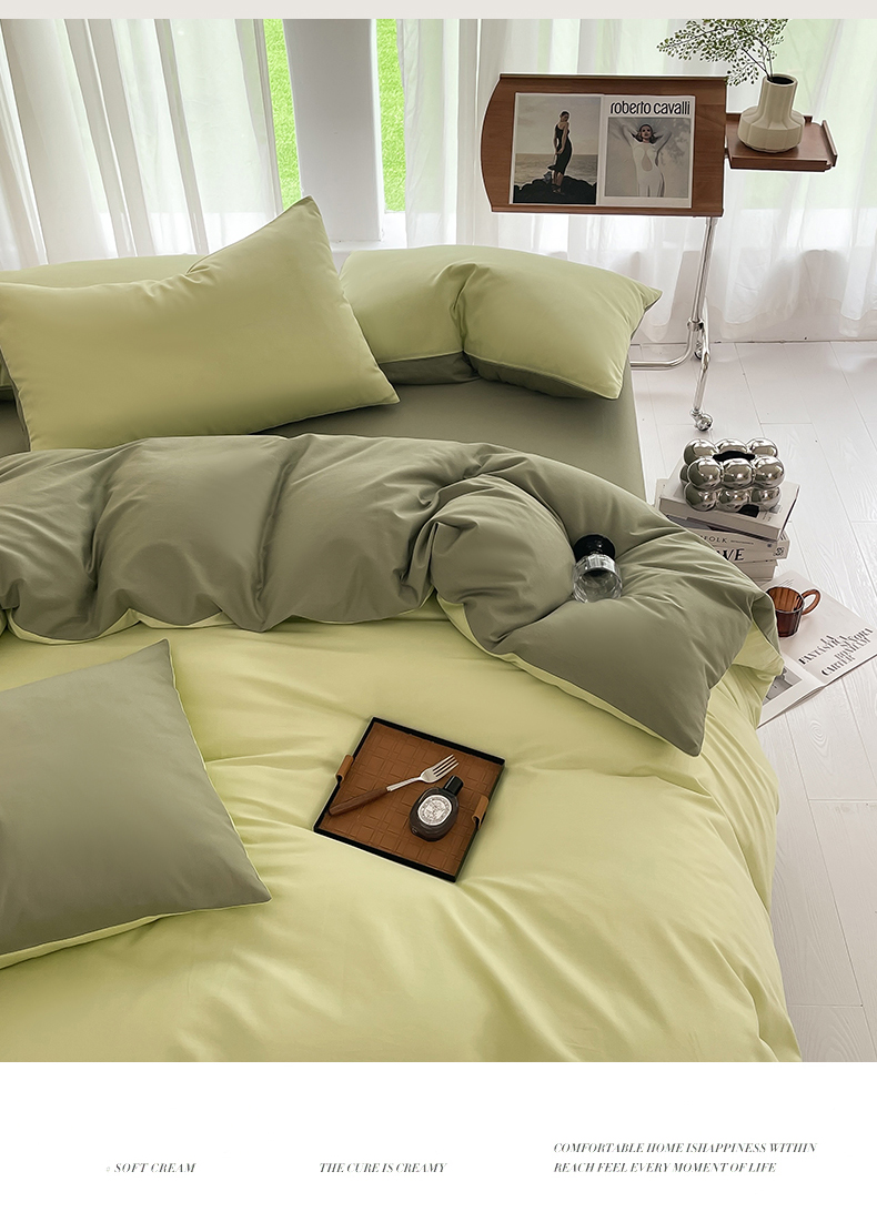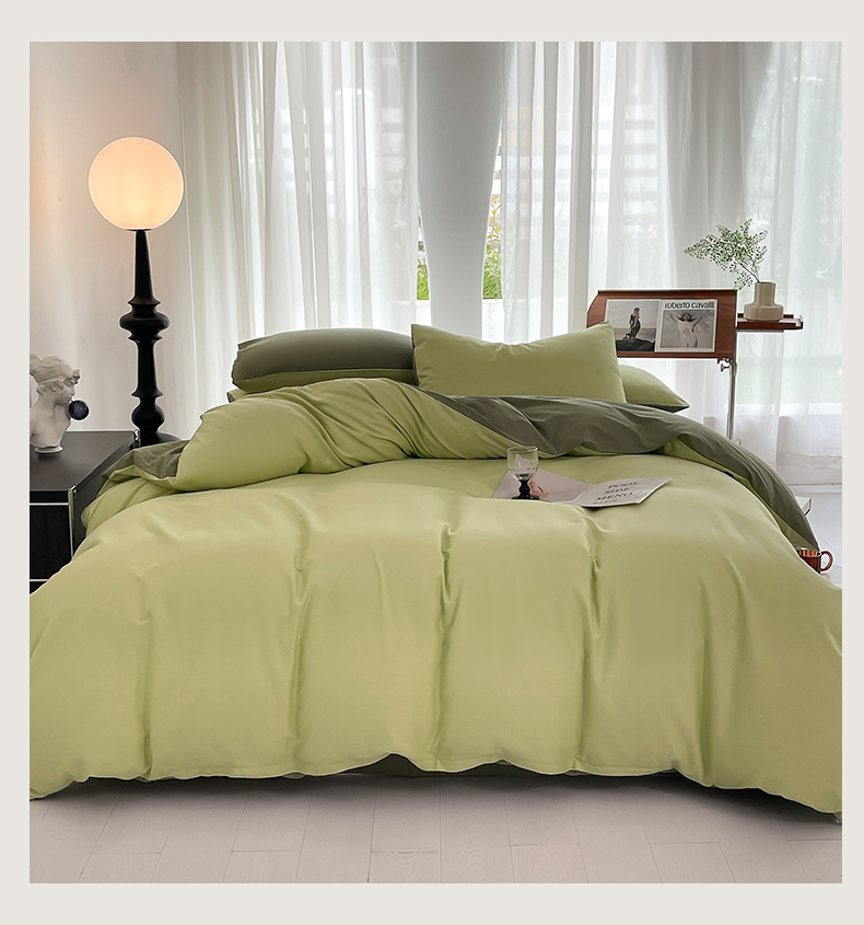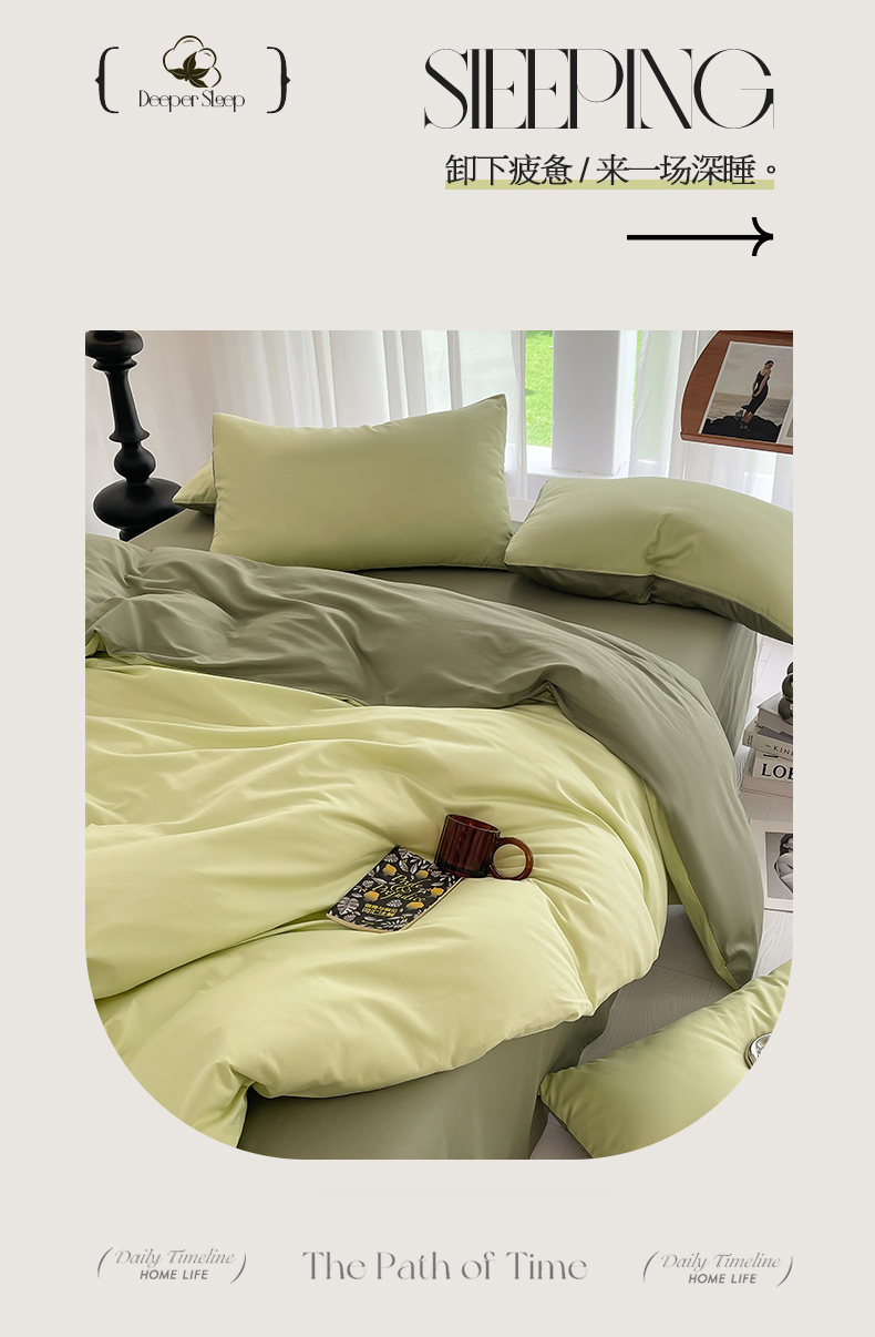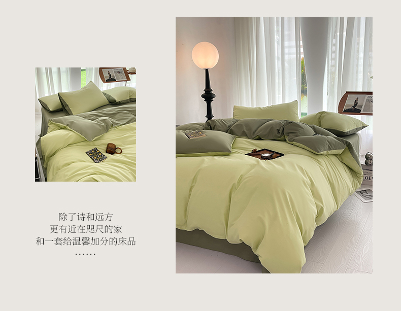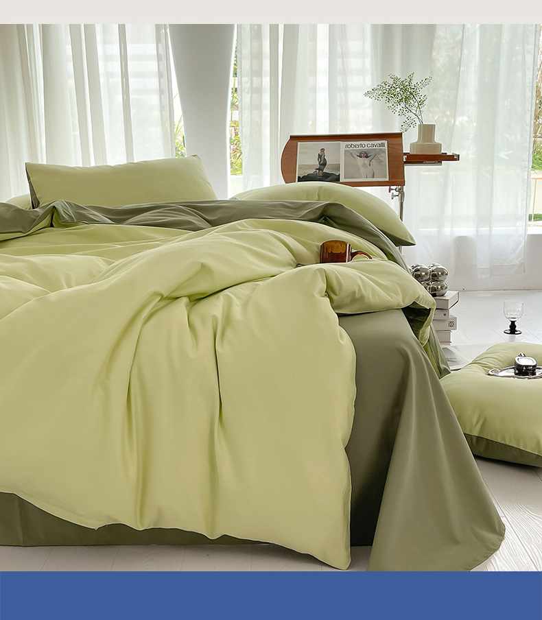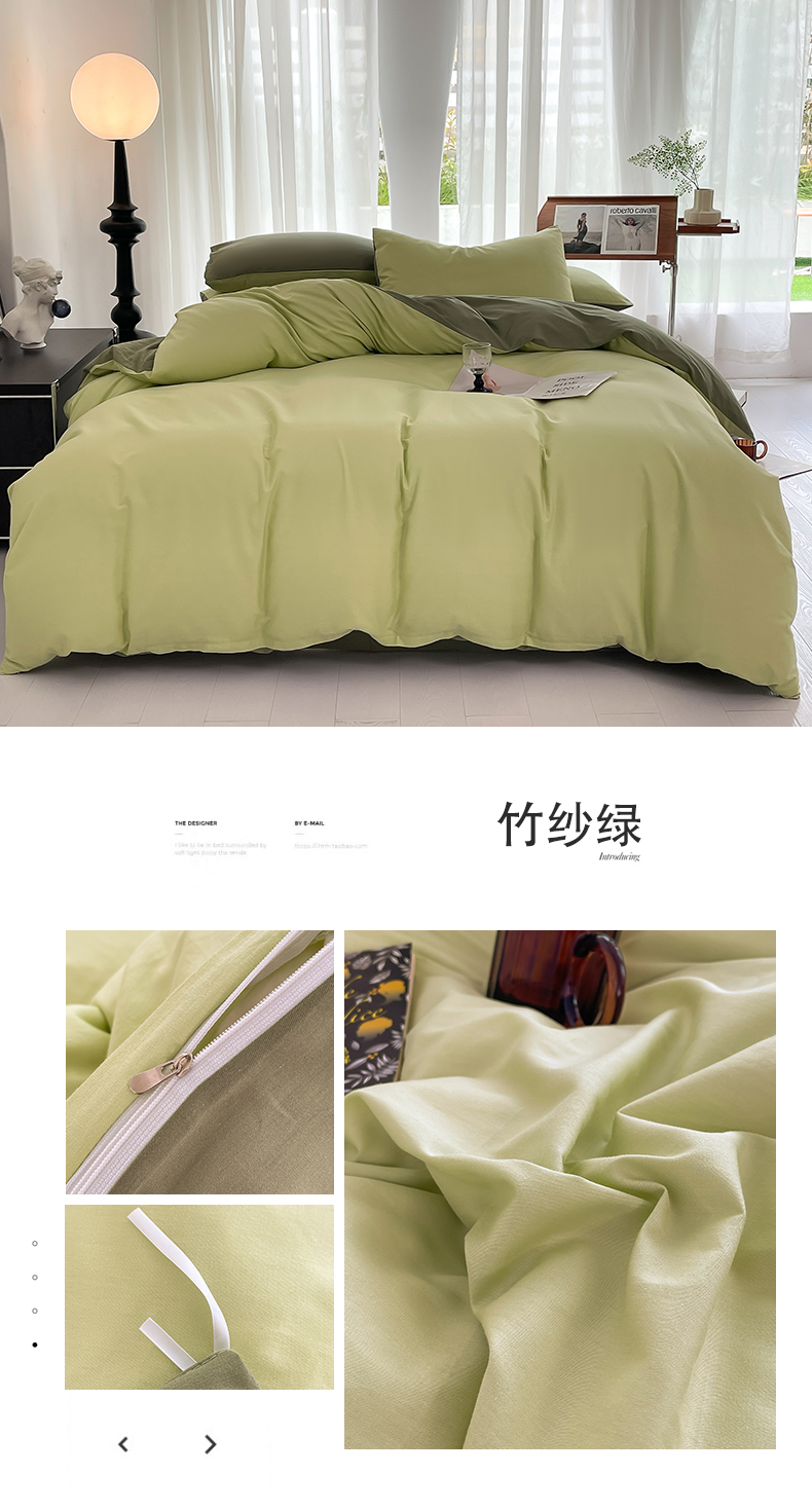 商品名称:多品家纺 2024新款全棉纯色双拼四件套 竹纱绿
