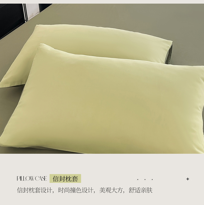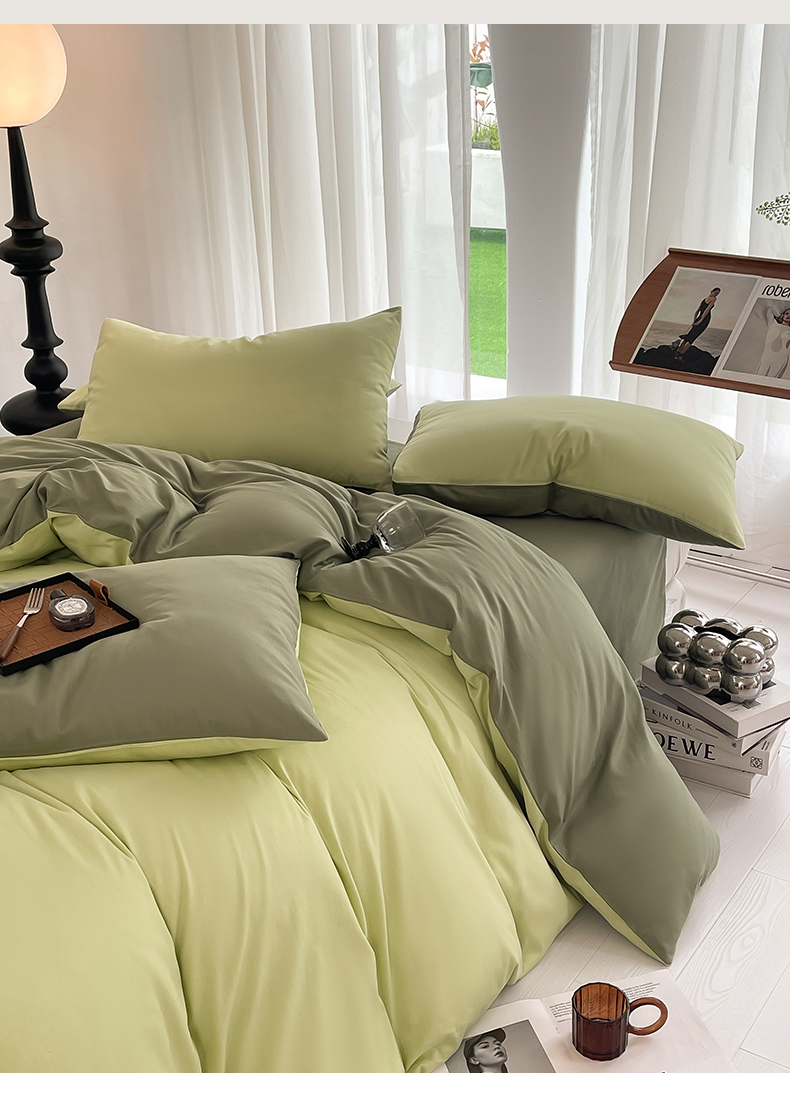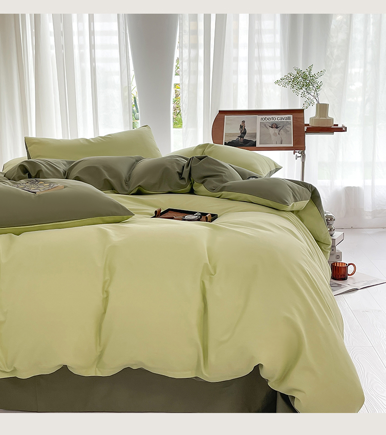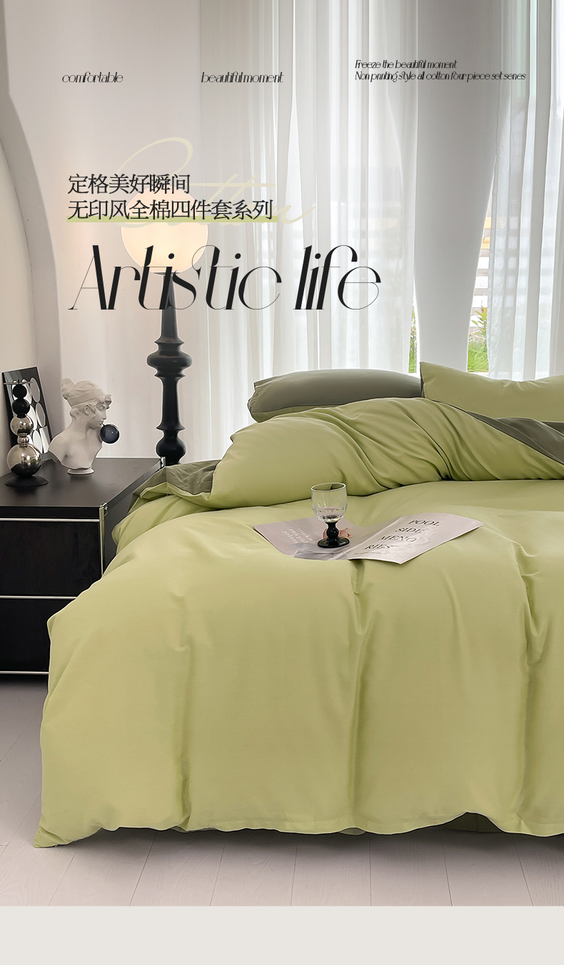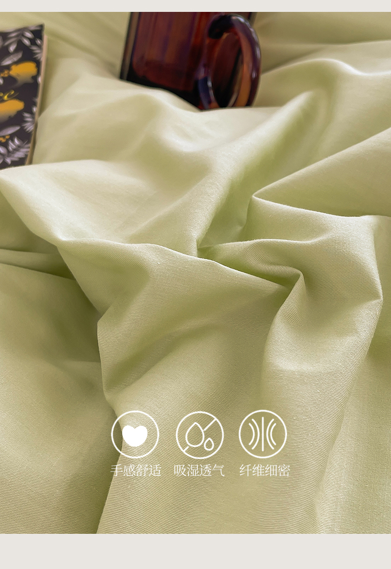 多品家纺 2024新款全棉纯色双拼四件套 竹纱绿