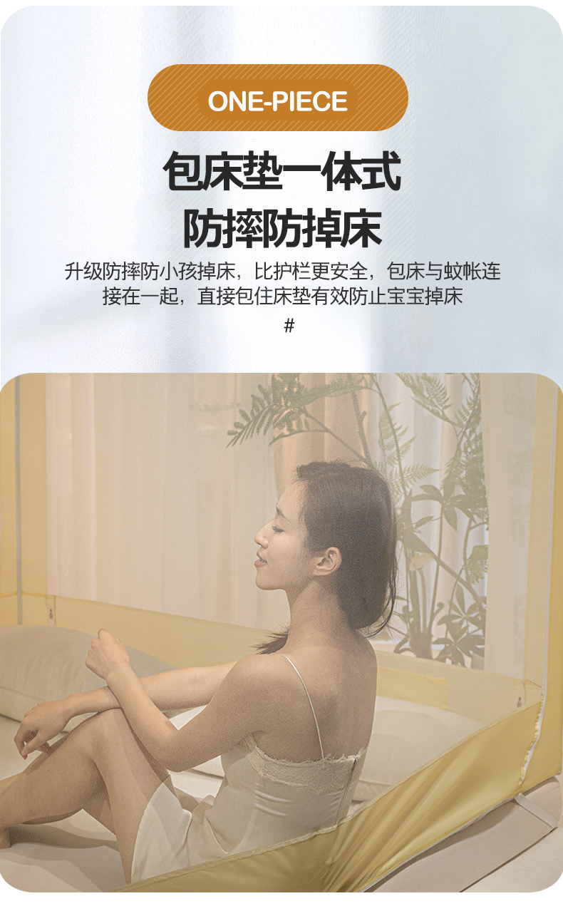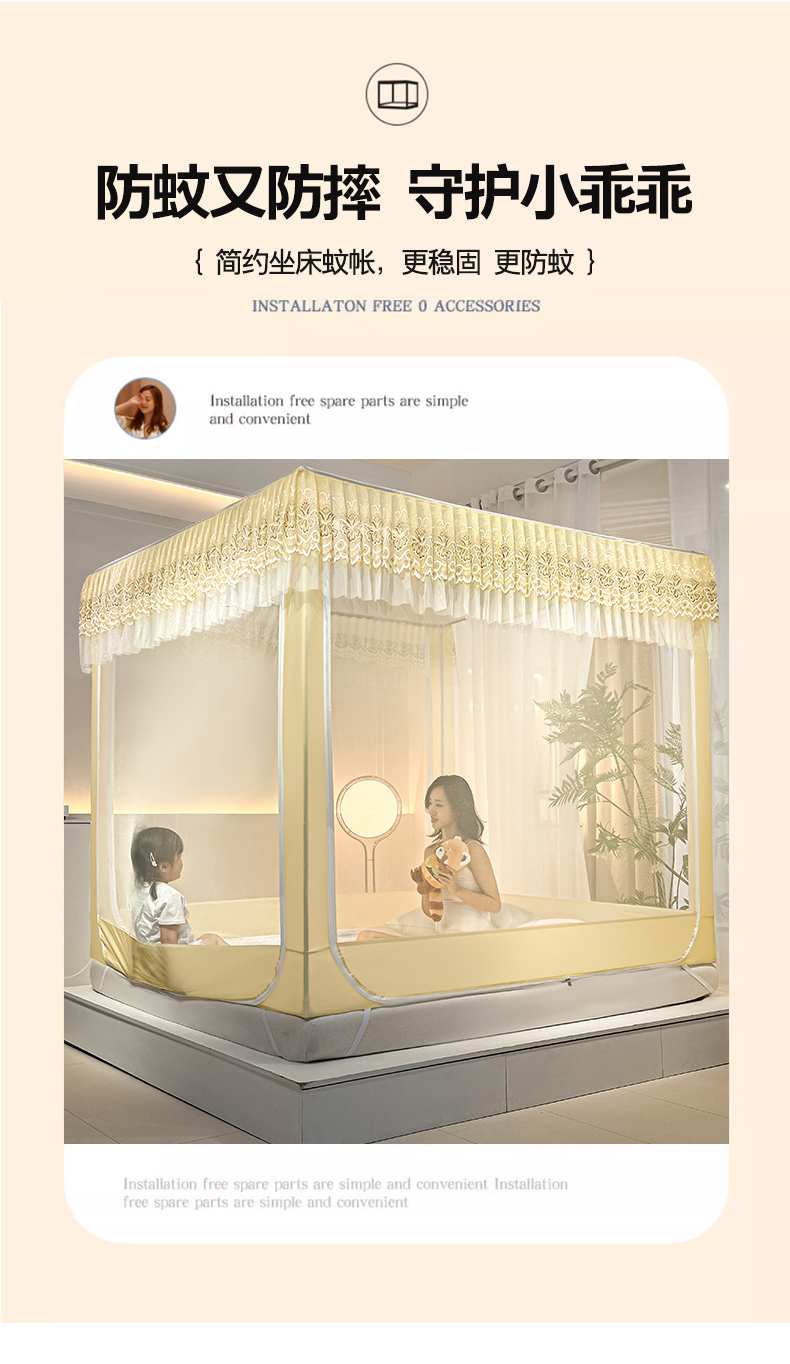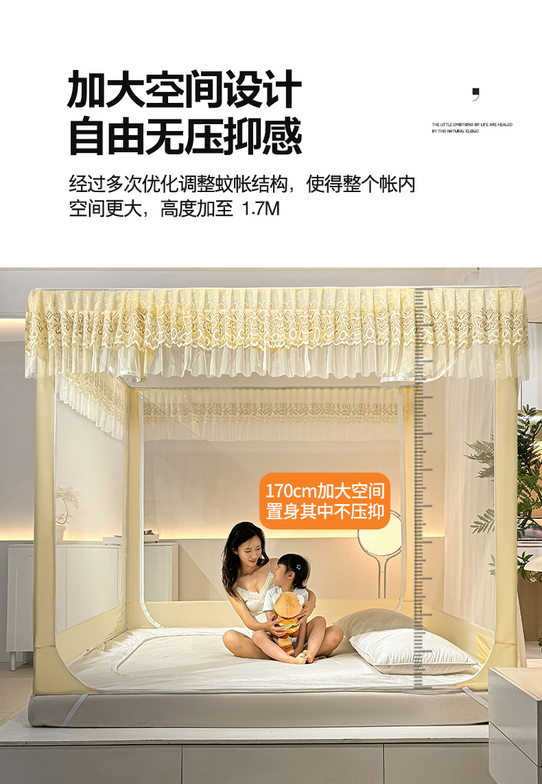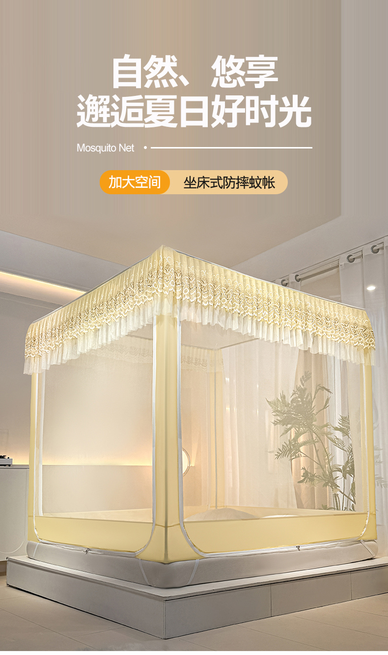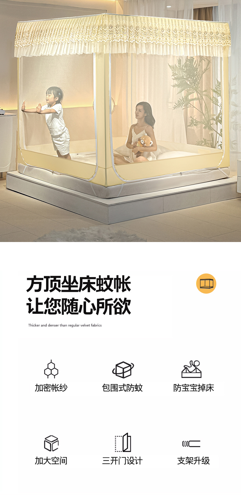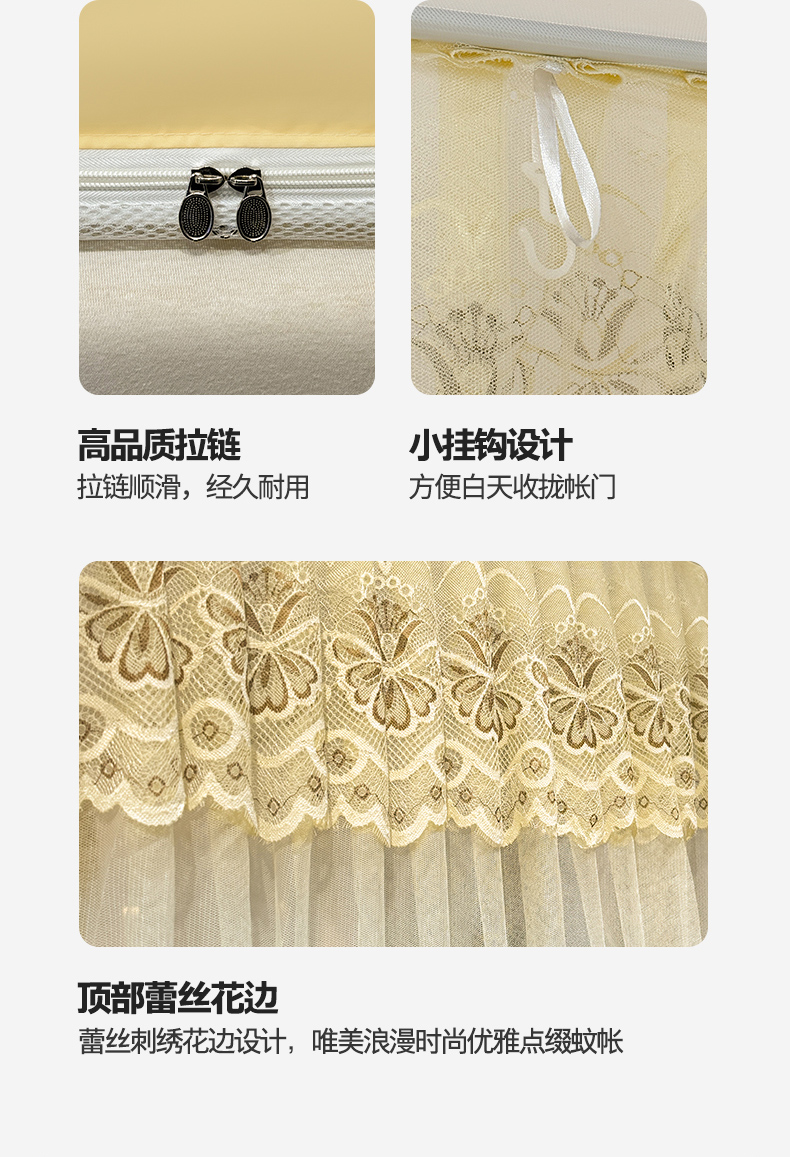 商品名称:青竹苑 2024新款内穿蕾丝花边坐床蚊帐 爱丽丝-嫩黄