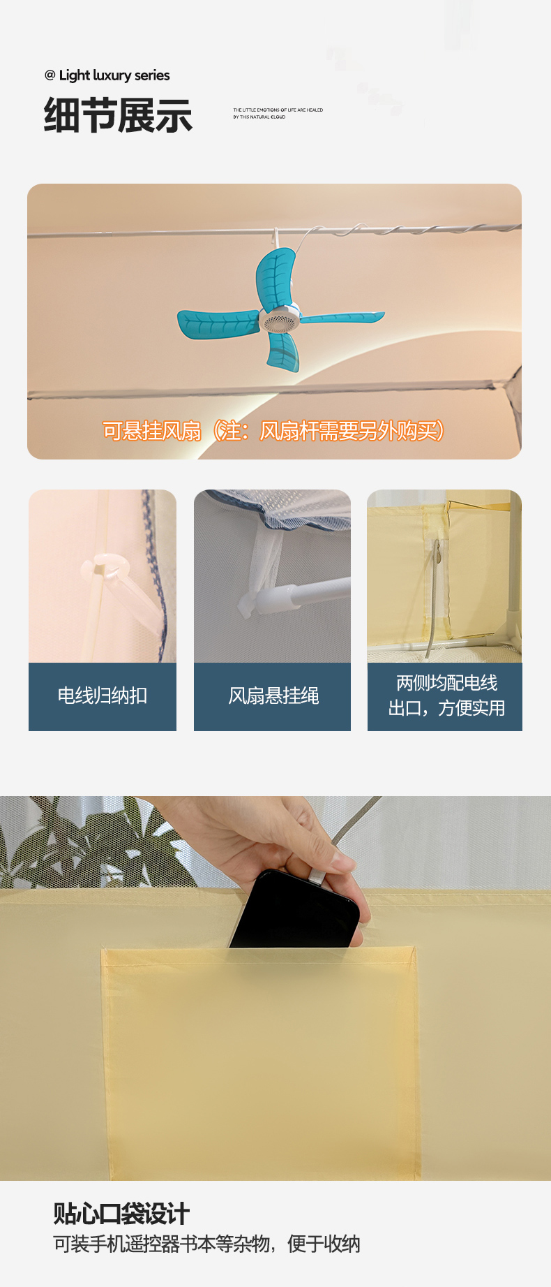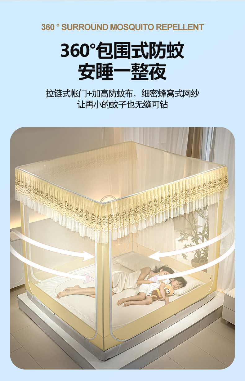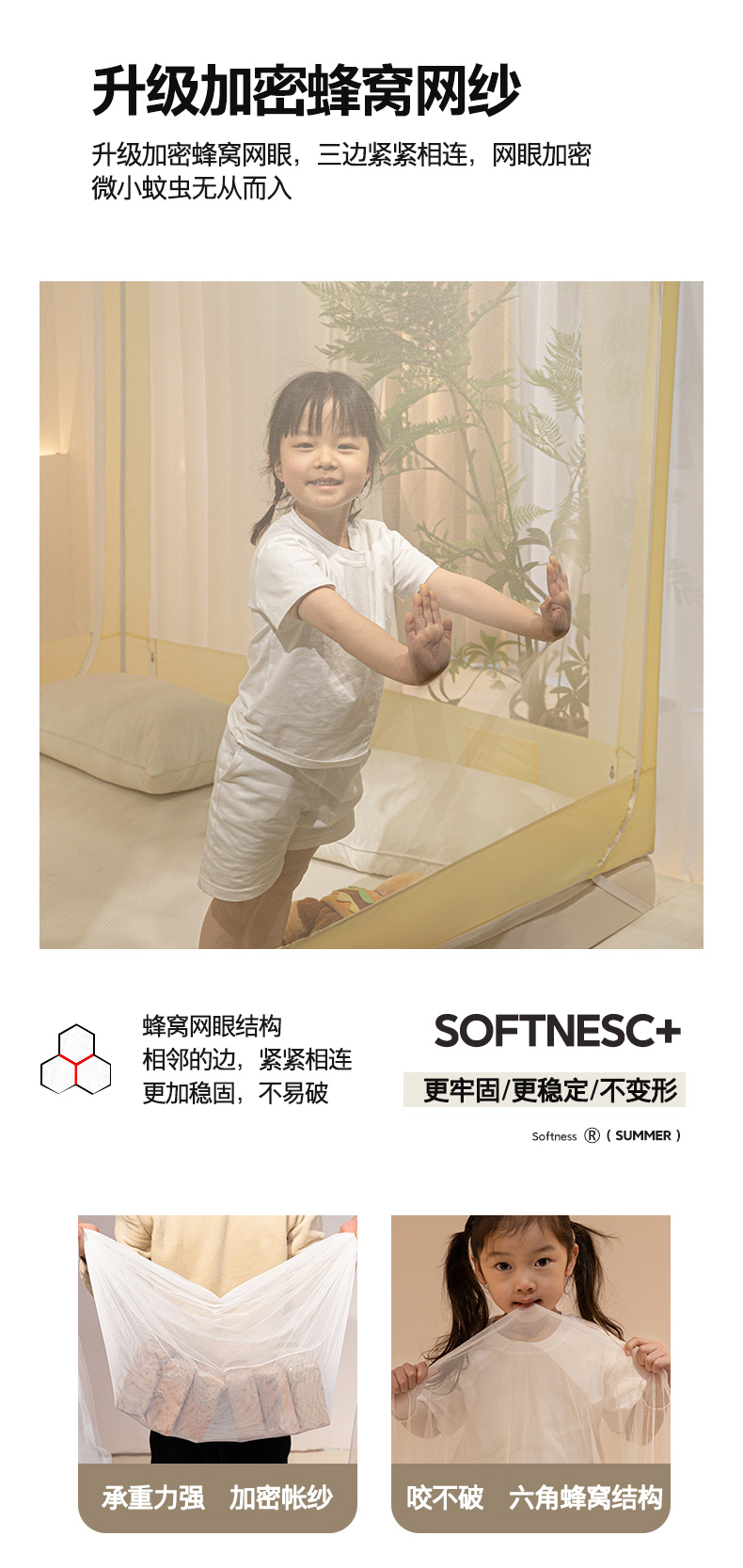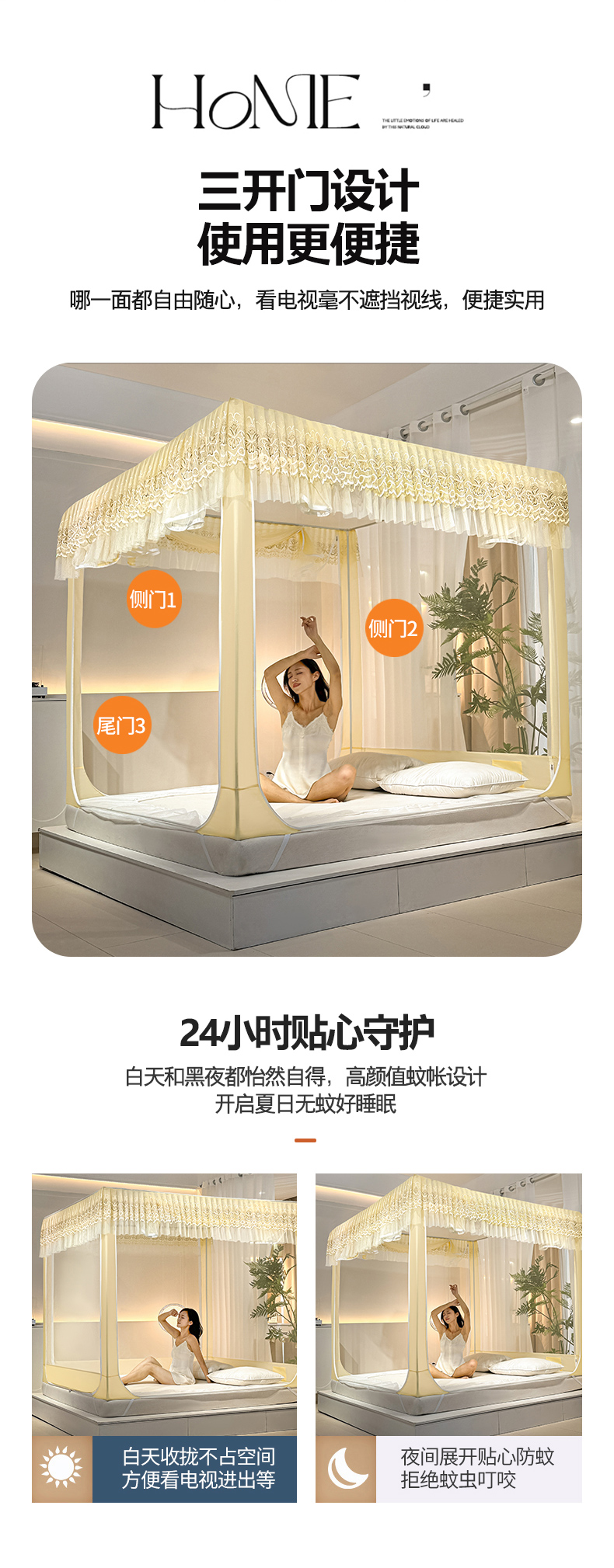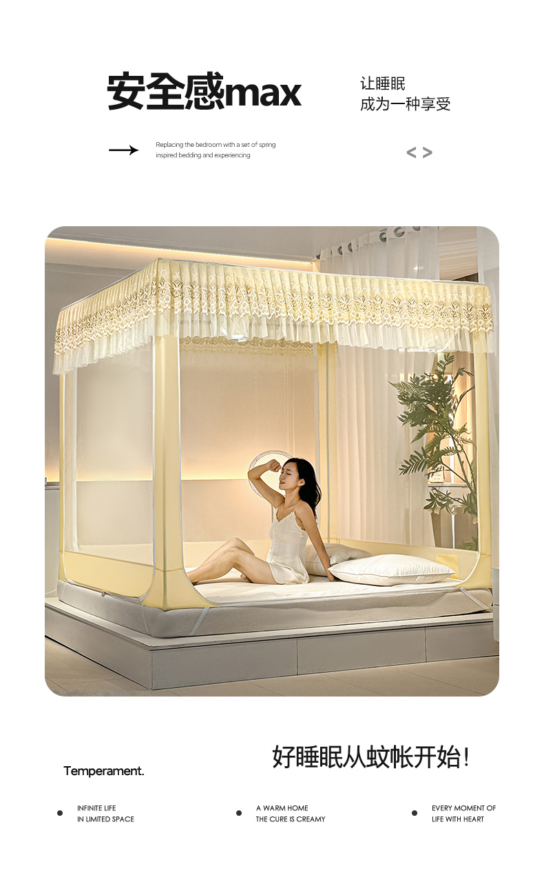 商品名称:青竹苑 2024新款内穿蕾丝花边坐床蚊帐 爱丽丝-嫩黄