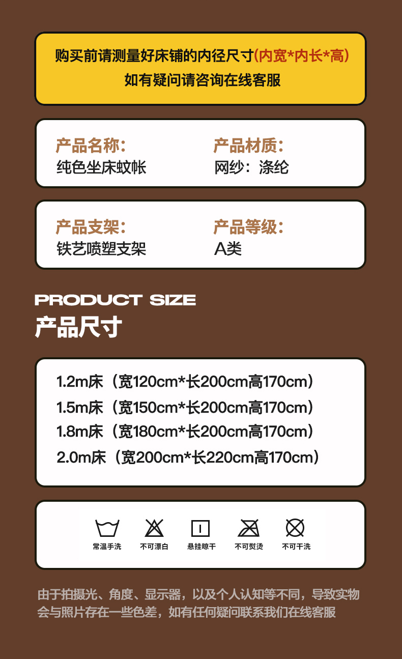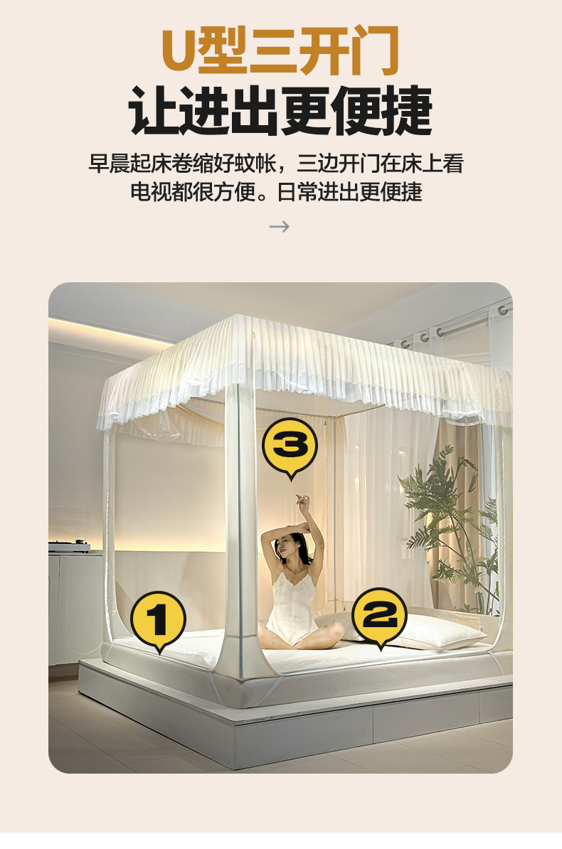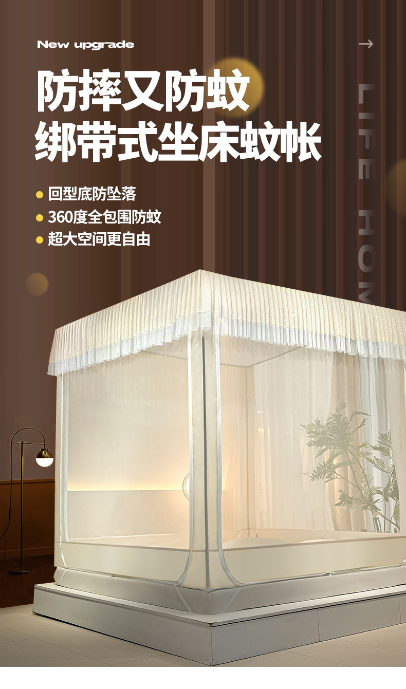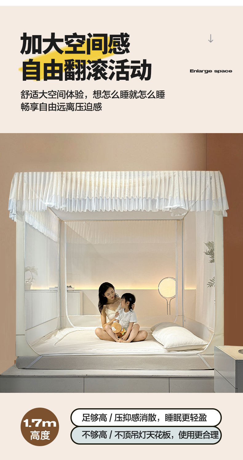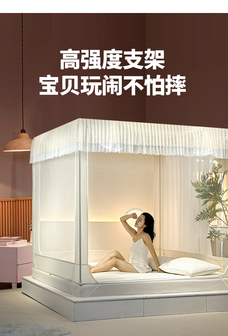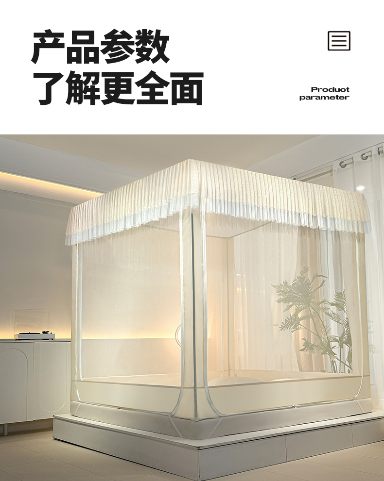商品名称:青竹苑 2024新款内穿蕾丝花边坐床蚊帐 初夏-米色