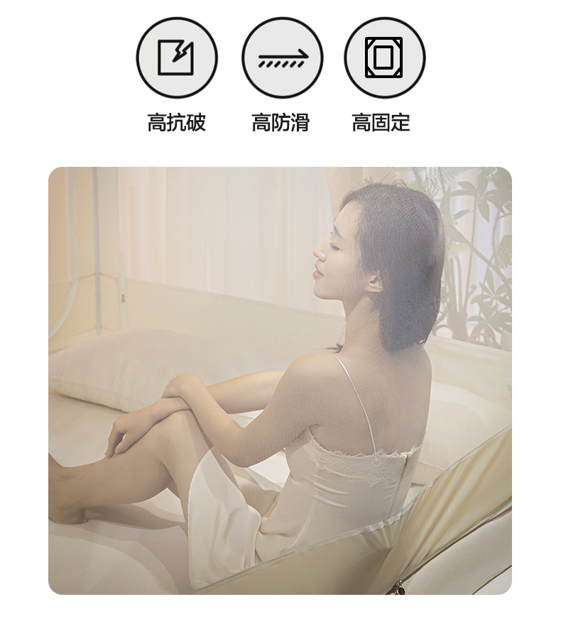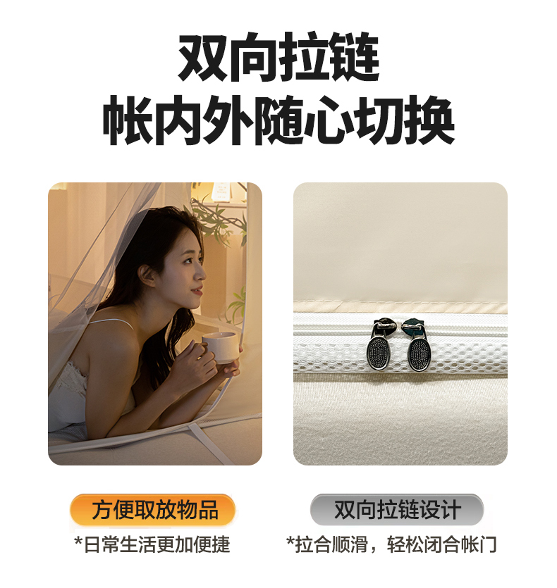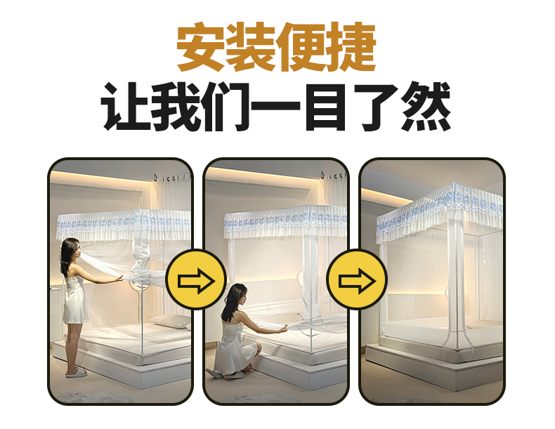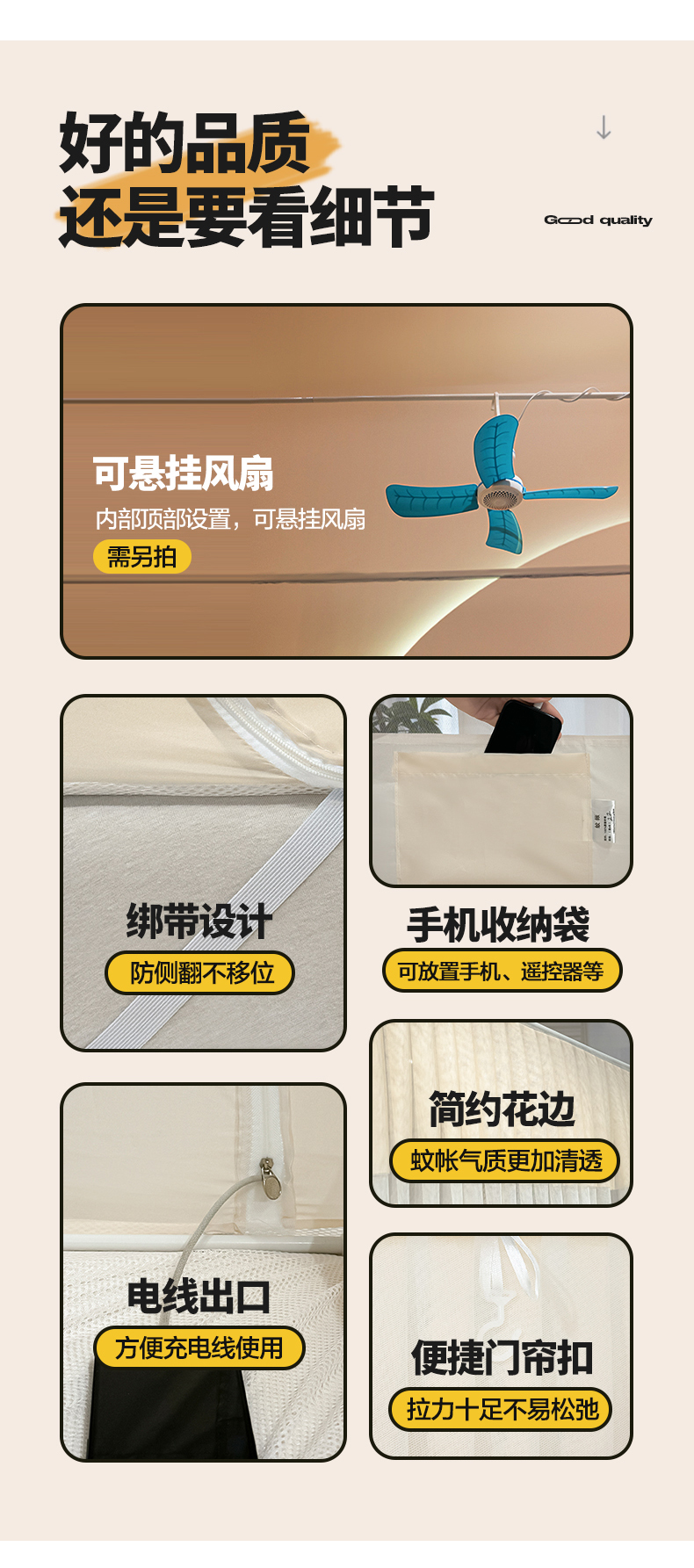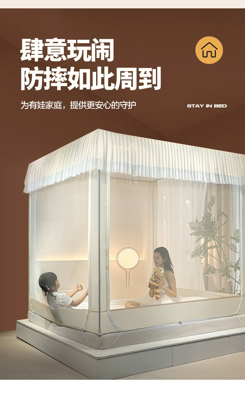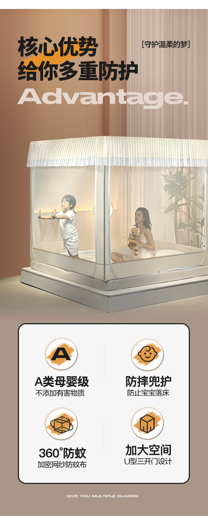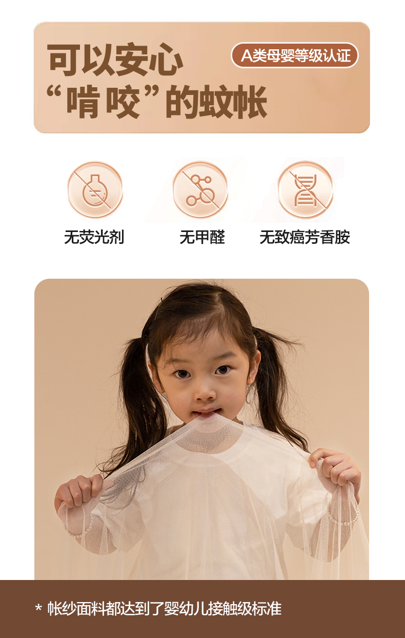 商品名称:青竹苑 2024新款内穿蕾丝花边坐床蚊帐 初夏-米色