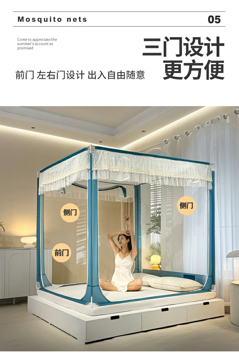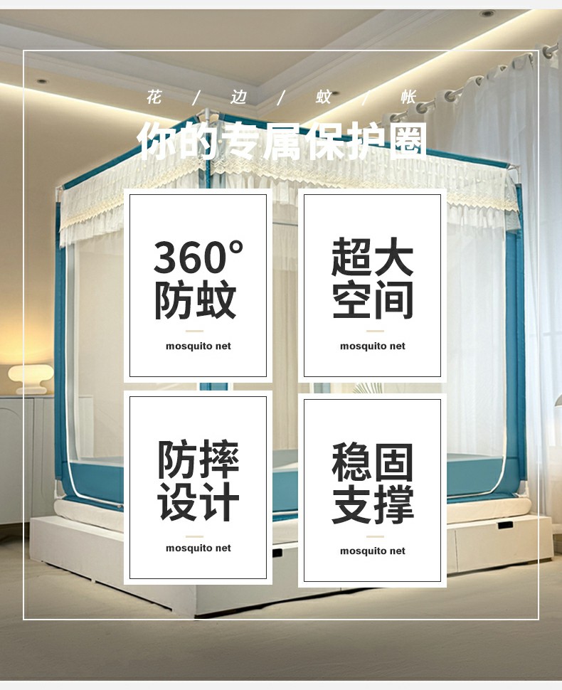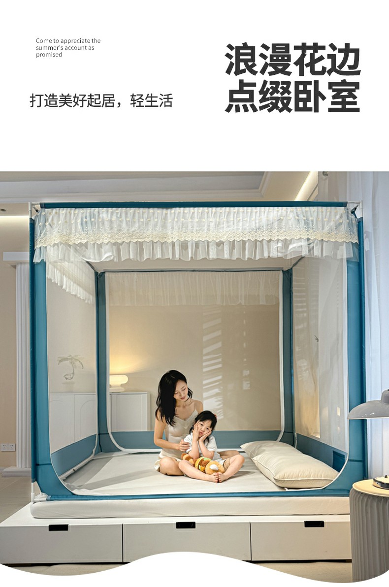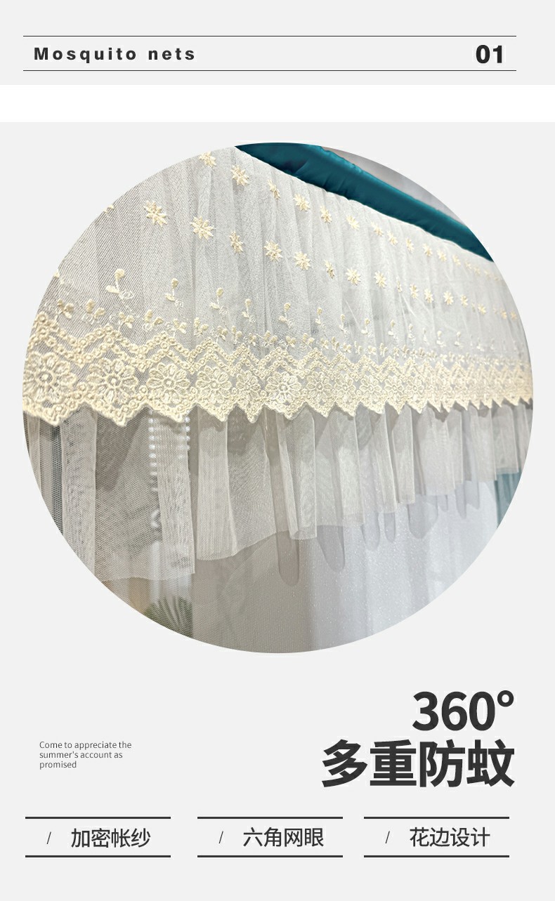 商品名称:青竹苑 2024新款铃兰花开外穿蕾丝花边坐床蚊帐 铃兰花开-孔雀绿