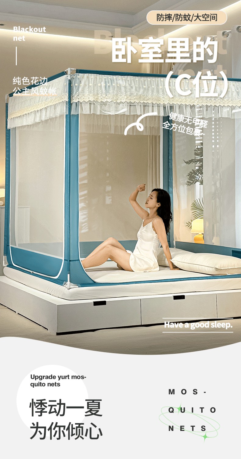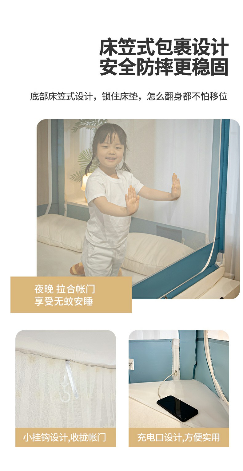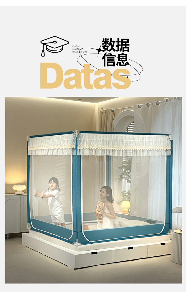 商品名称:青竹苑 2024新款铃兰花开外穿蕾丝花边坐床蚊帐 铃兰花开-孔雀绿