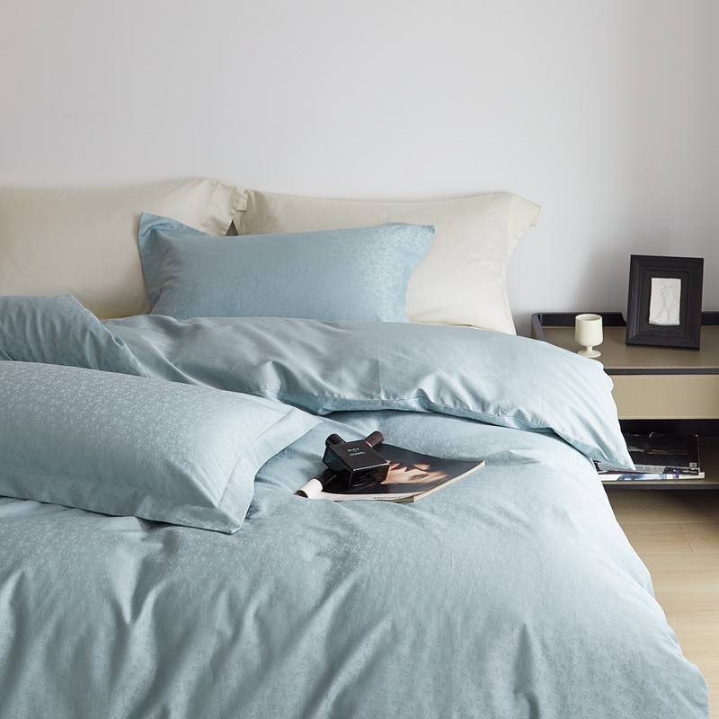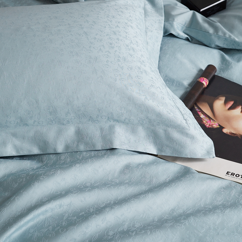 商品名称:梦享生活家居 2024新款100支全棉提花贡缎四件套 唯美之歌(湖蓝)