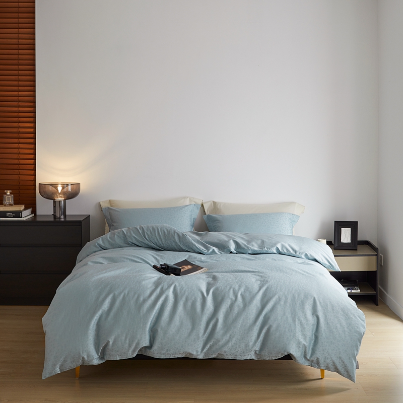 总梦享生活 2022新款100支水洗棉双拼全棉四件套纯棉套件,奥丁黄双拼,冰月蓝双拼,淡蓝双拼,牛油果双拼,深咖双拼,松蓝双拼,海蓝+咖