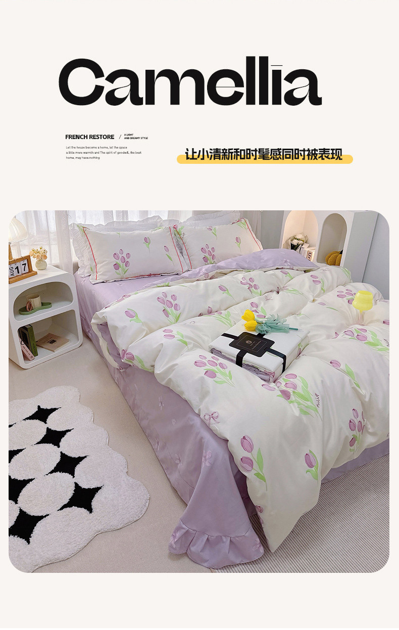 (总)庭笙 新款丝带款臻品磨毛印花四件套