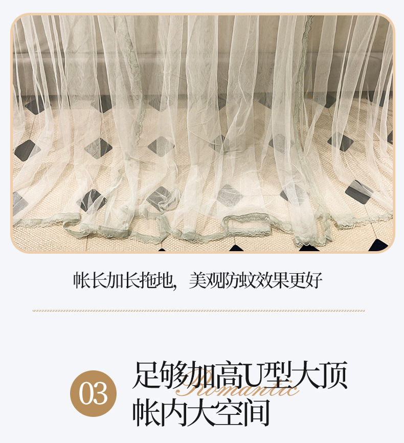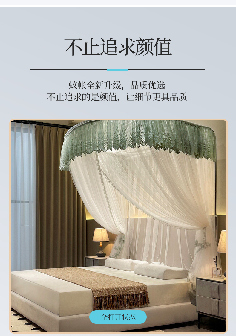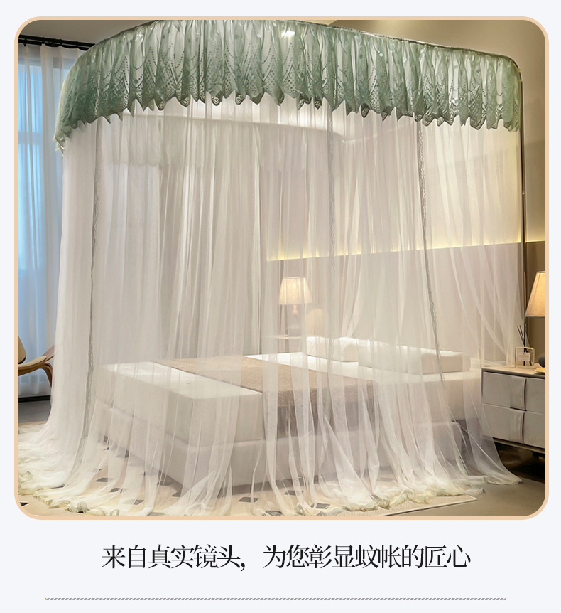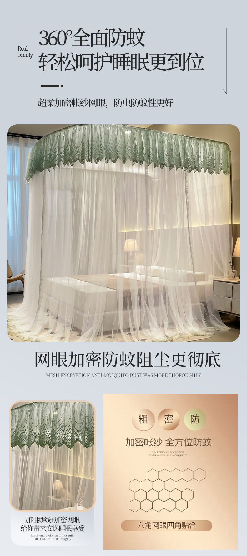 (总)夏彩 2025新款蕾丝U型防摔坐床蚊帐-88630,绿雅灰,藕玉色,香槟色
