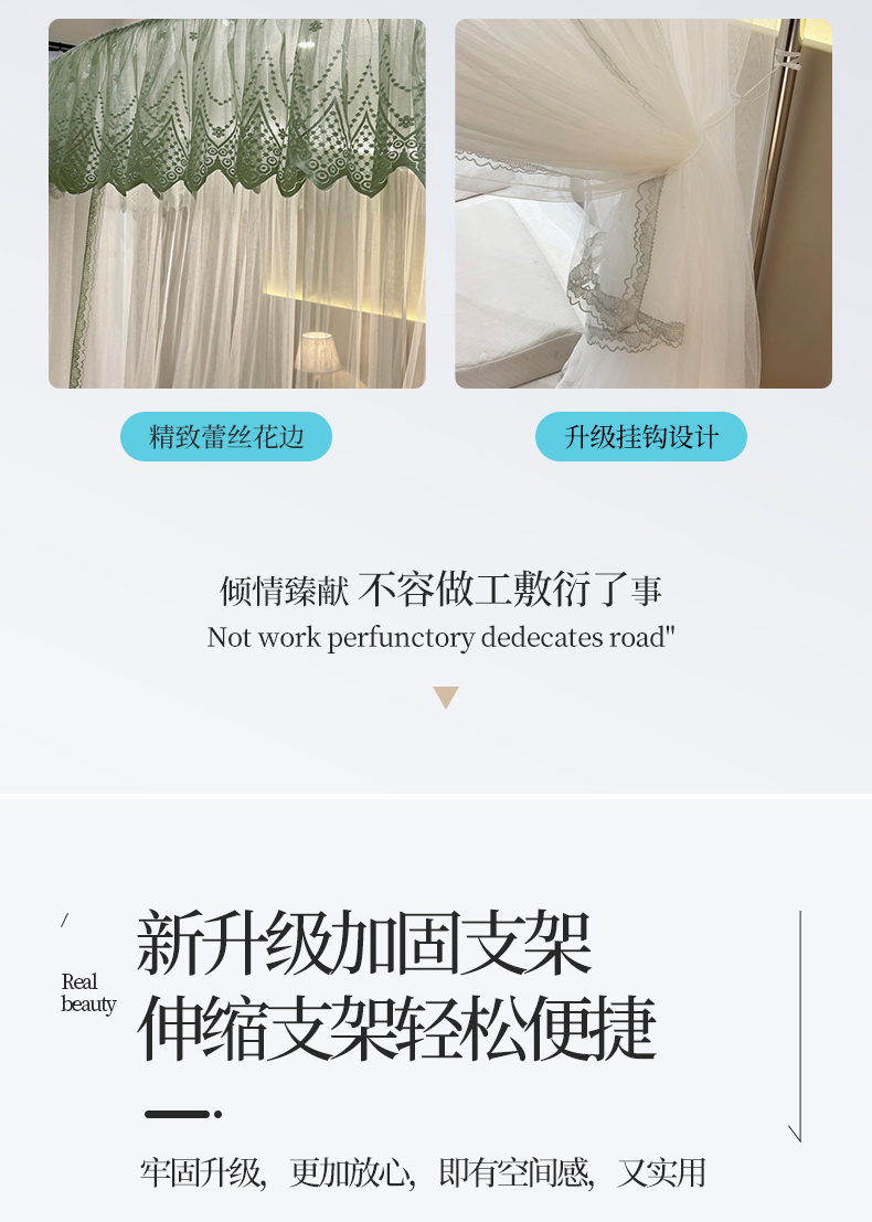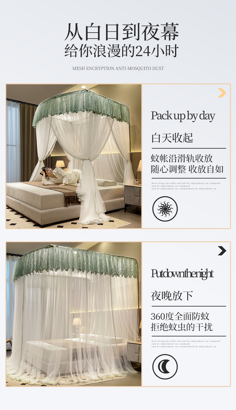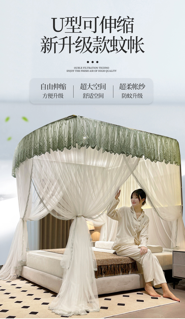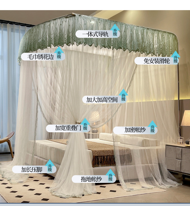 (总)夏彩 2025新款蕾丝U型防摔坐床蚊帐-88630,绿雅灰,藕玉色,香槟色