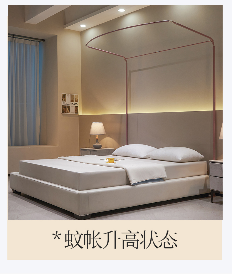 (总)夏彩 2025新款浪漫唯美T+U床笠式坐床外穿防摔蚊帐-88610,886610冰海蓝,886610极光白,886610浅粉玉,886610浅水蓝,886610蔷薇粉,886610杏仁黄,886610雅士灰