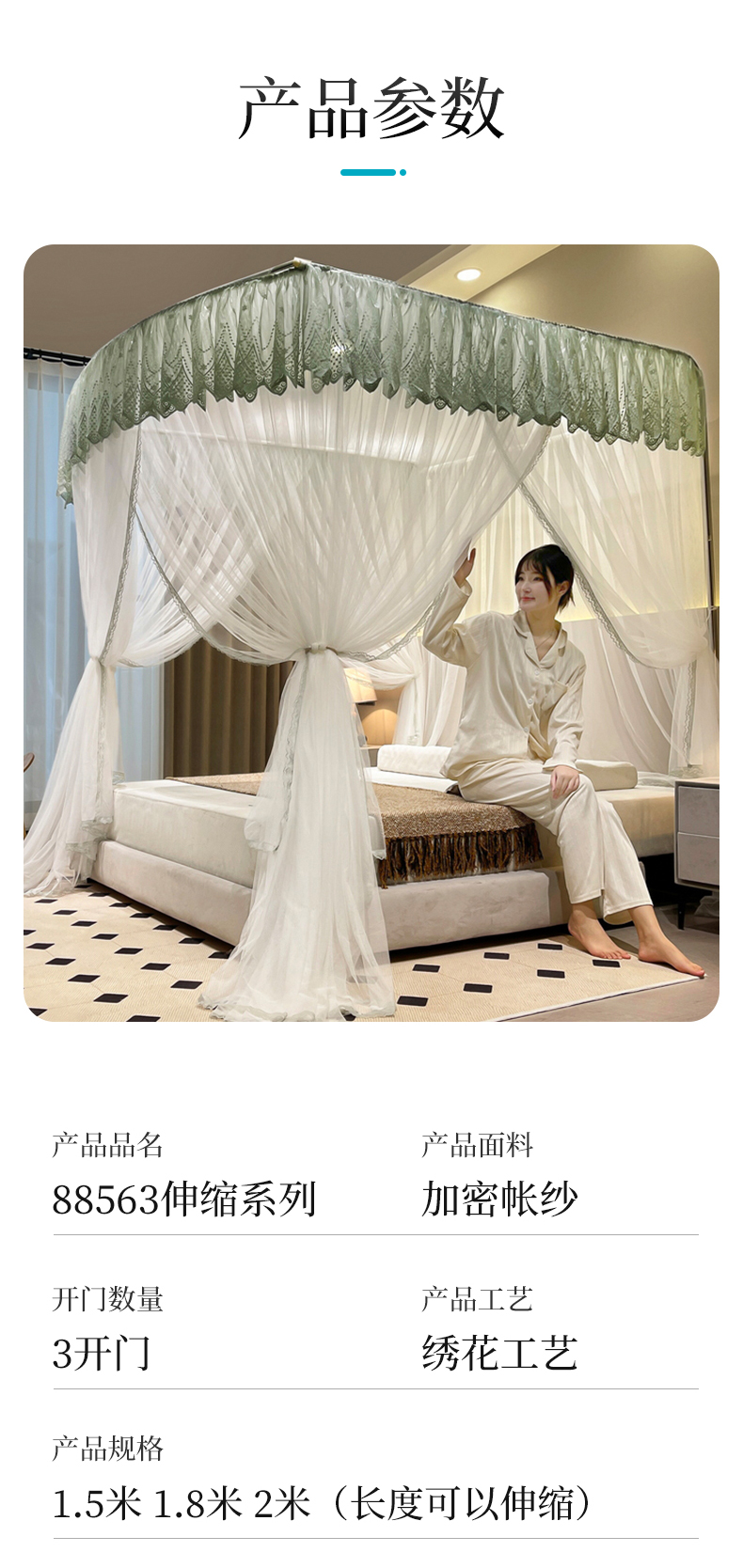 商品名称:夏彩 2024新款加柔加密长度可伸缩蚊帐-88563 88563-白绿