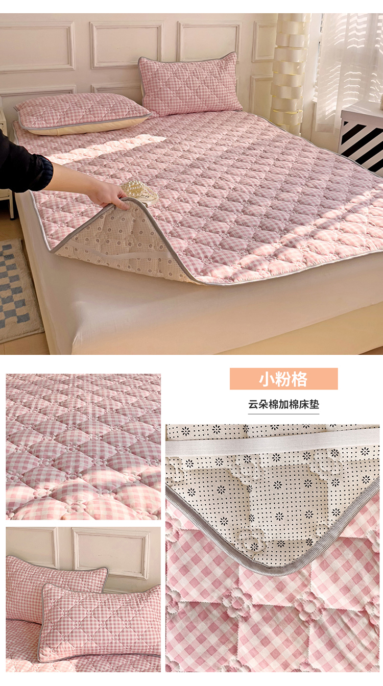 纽缦家纺 2024云朵棉加厚加棉床垫 小粉格