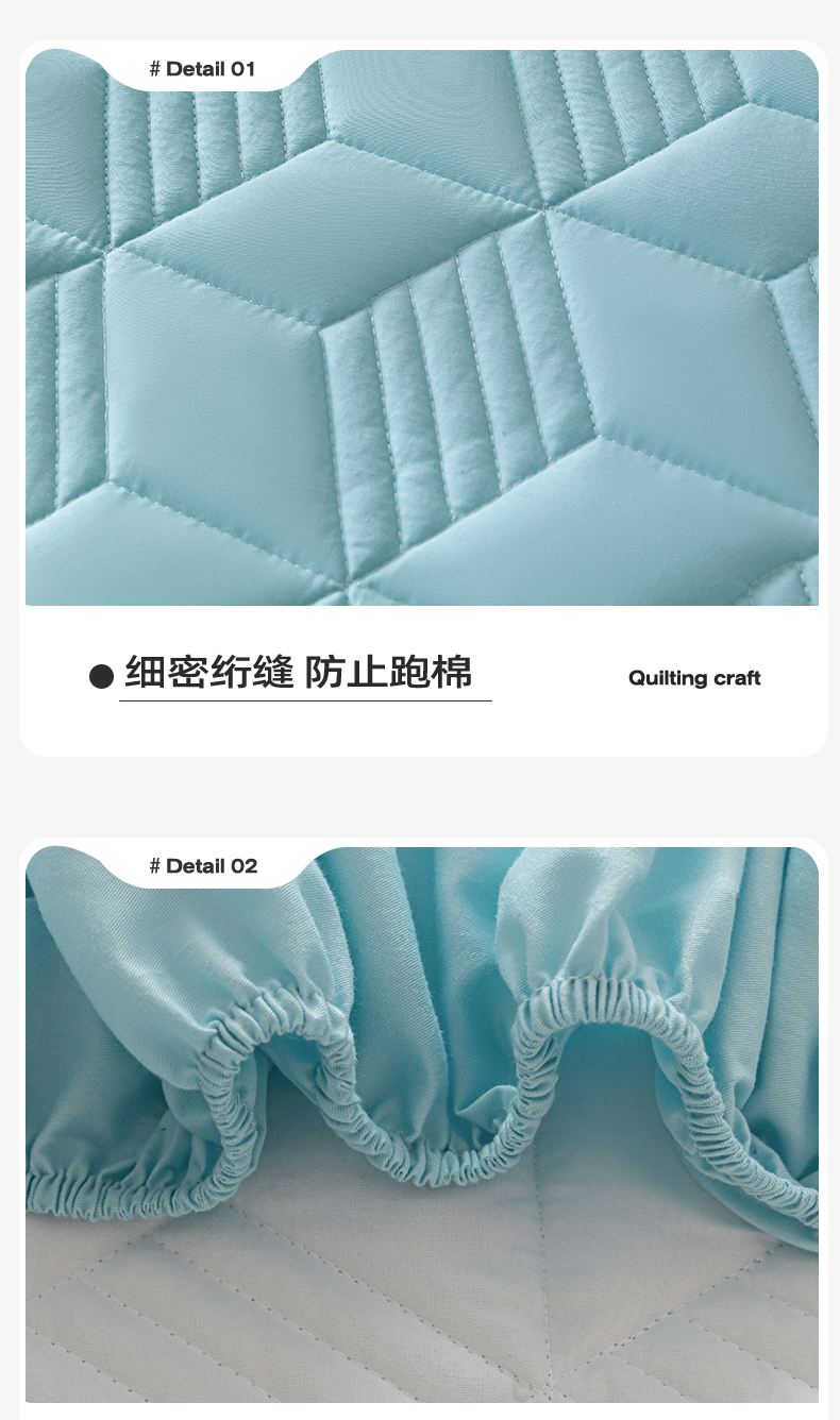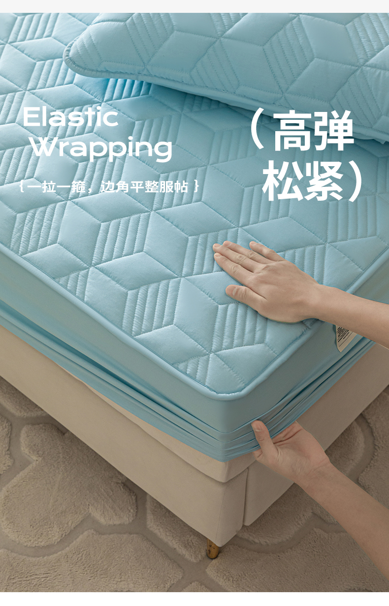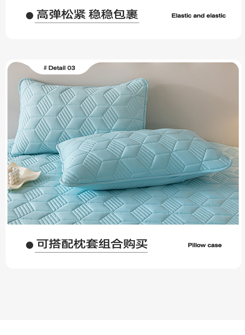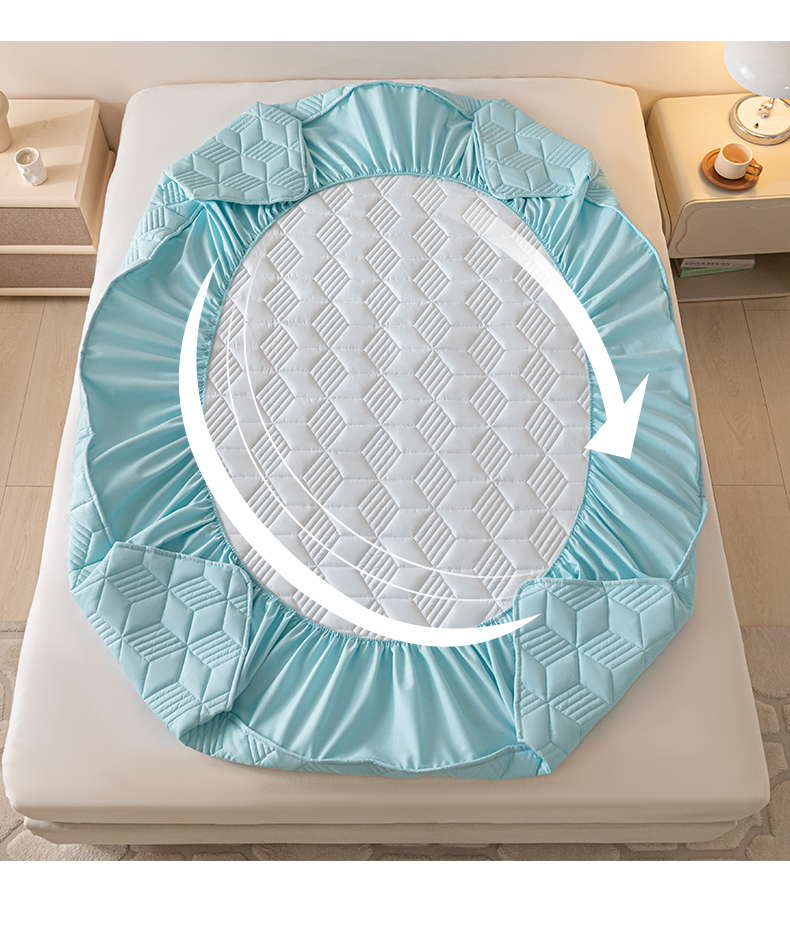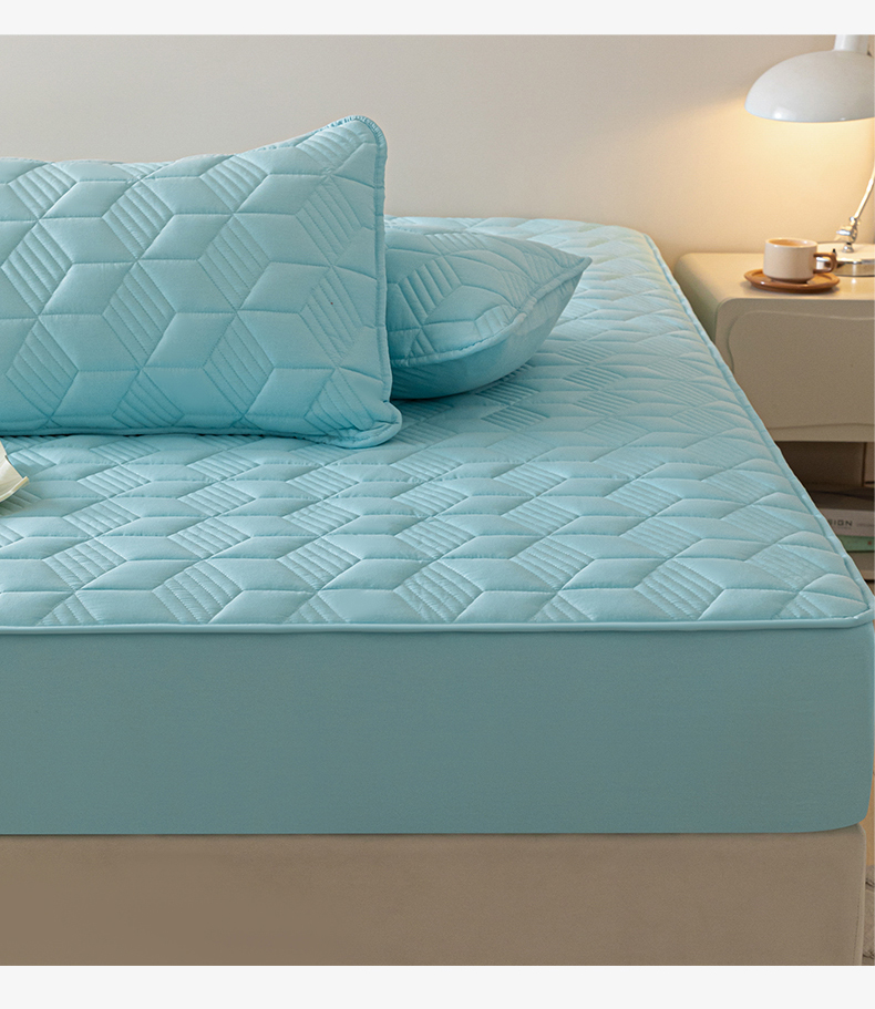 商品名称:其奥 2025新款高密全棉夹棉床笠三件套 湖蓝(床笠款)