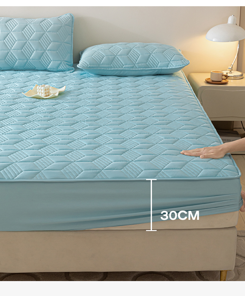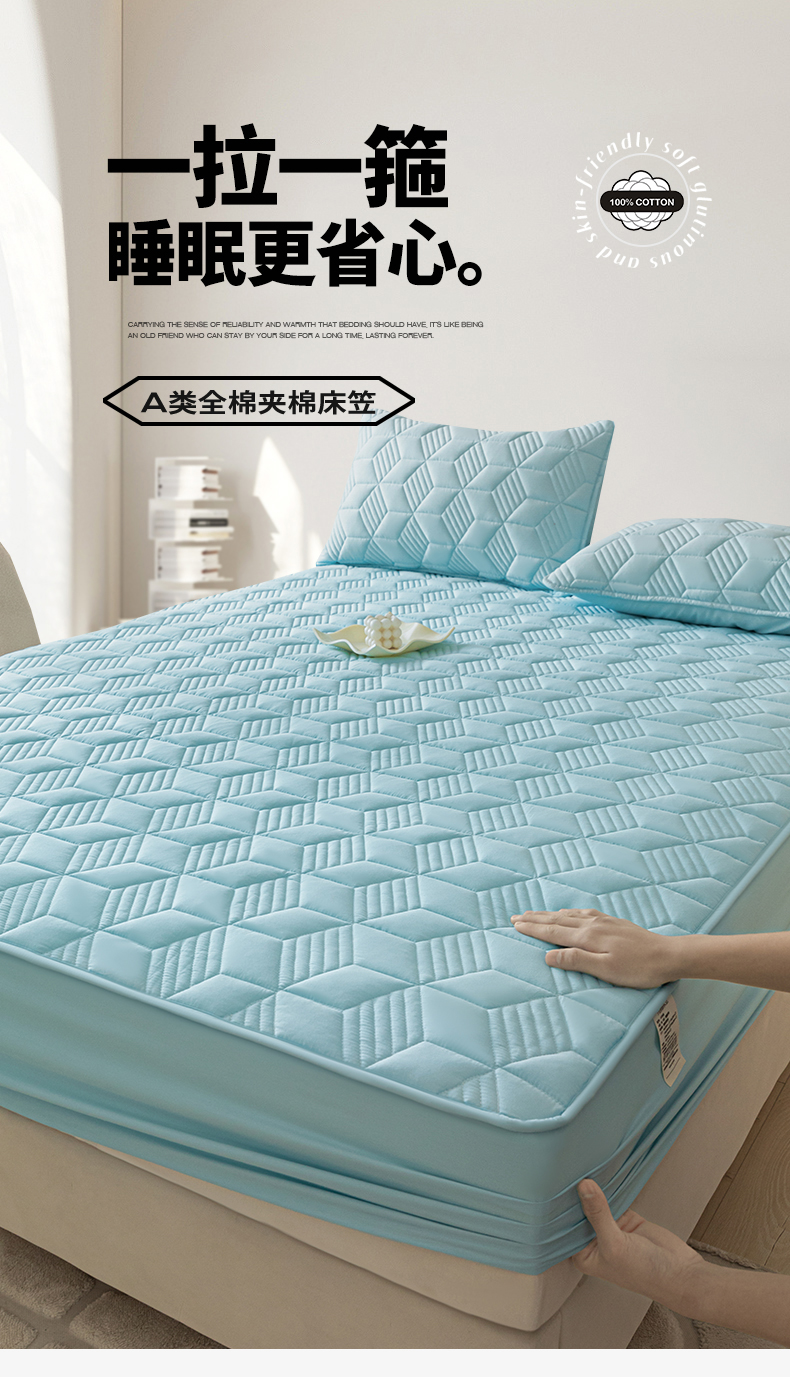 其奥 2025新款高密全棉夹棉床笠三件套 湖蓝(床笠款)