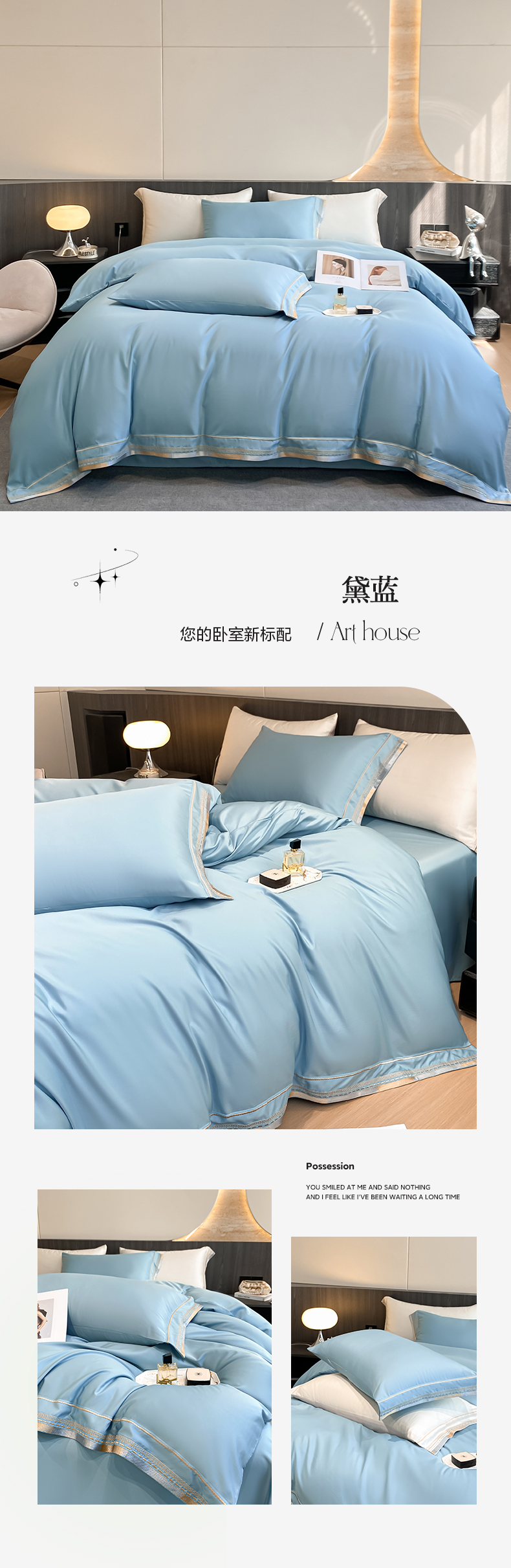 卓缦家纺2024莱赛尔天丝刺绣四件套 黛蓝