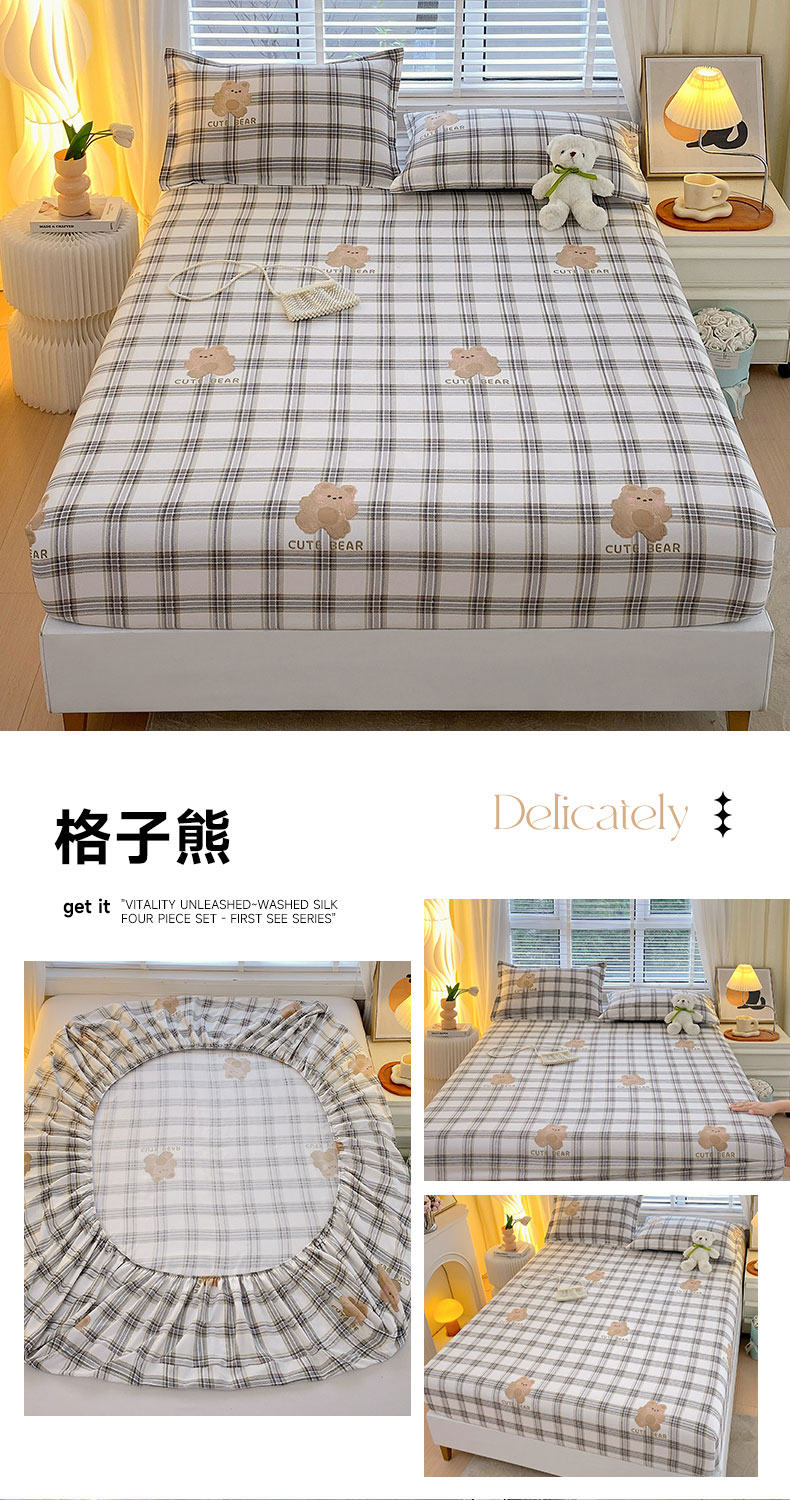 金丝兔 2025新款植物羊绒磨毛单床笠 格子熊