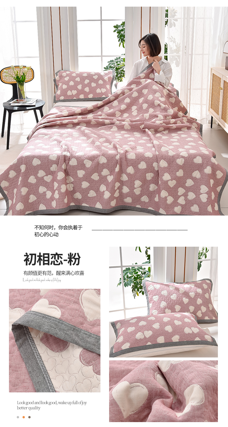 商品名称:米奈 2024新款A类抗菌全棉三层纱提花多功能盖毯(有质检报告) 初相恋-粉