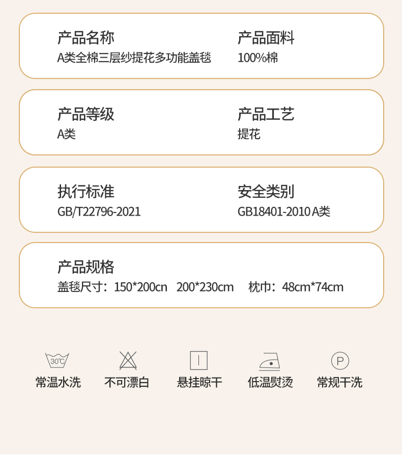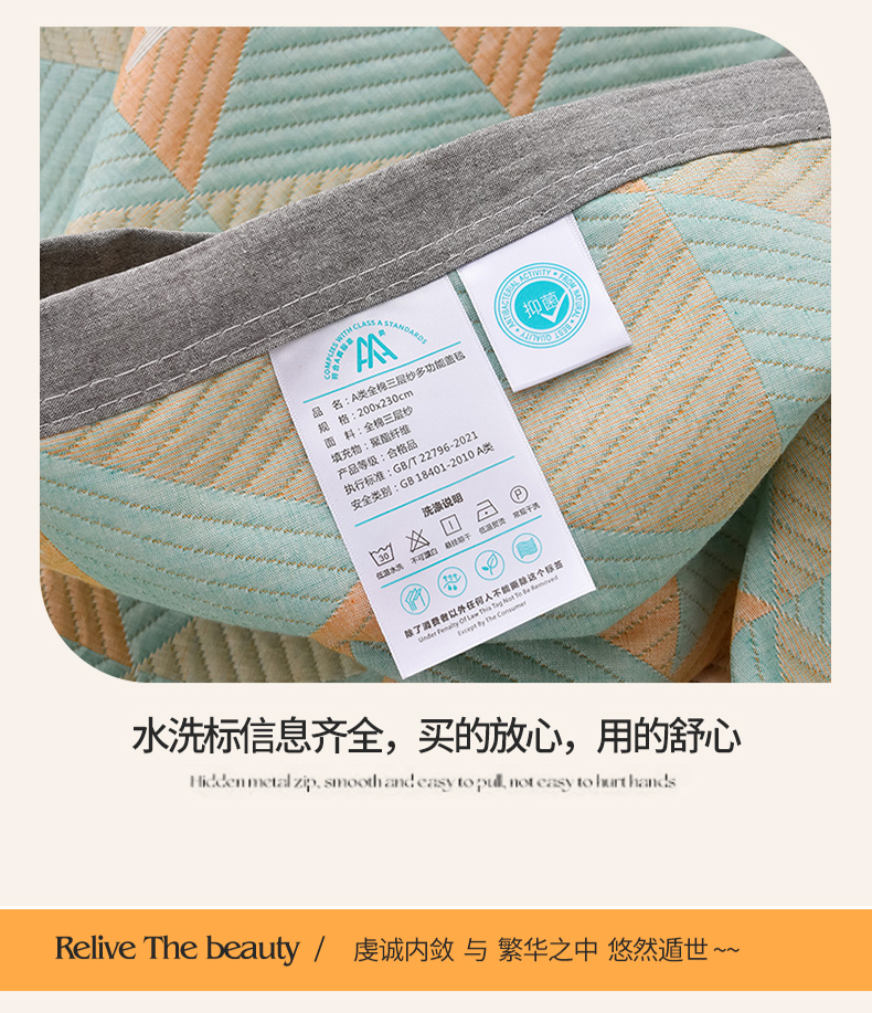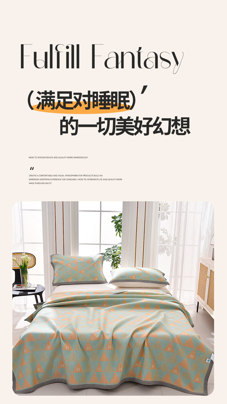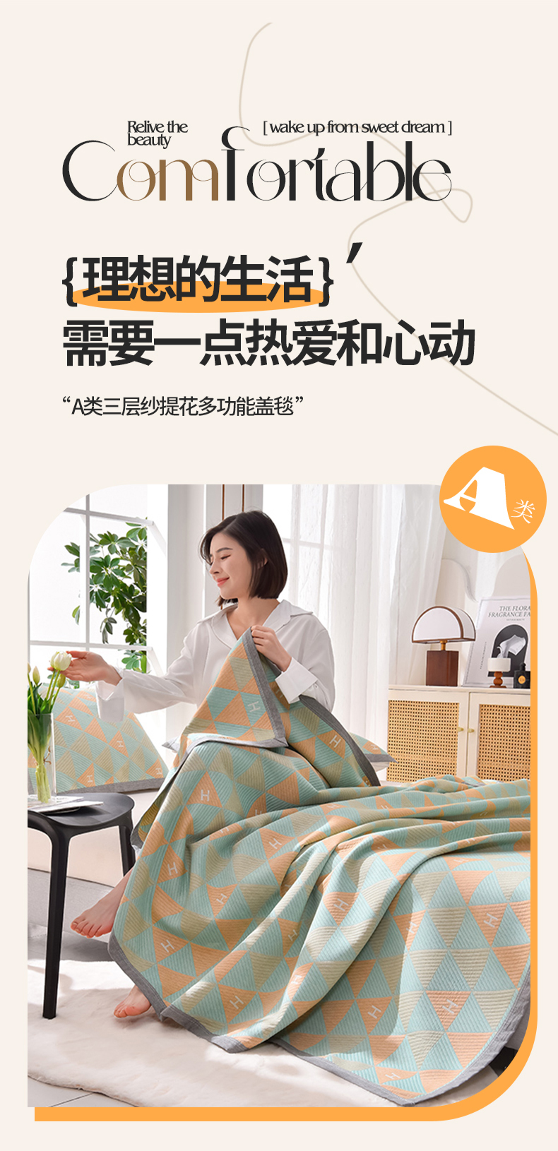 米奈 2024新款A类抗菌全棉三层纱提花多功能盖毯(有质检报告) 英伦字母-橙