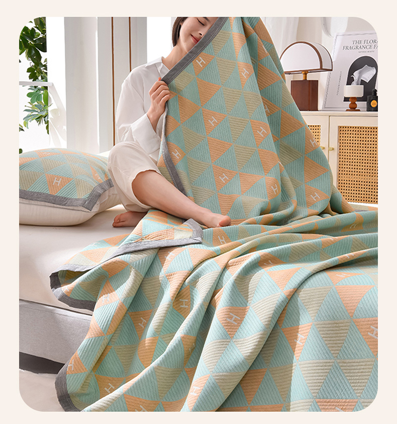 (总)米奈家居 2025全棉针织棉提花多功能盖毯,豆沙粉EN,豆沙粉H,公主粉,莱茵绿,玛雅灰,柠檬黄,绅士灰,天空蓝,香槟金EN,香槟金H,星空灰