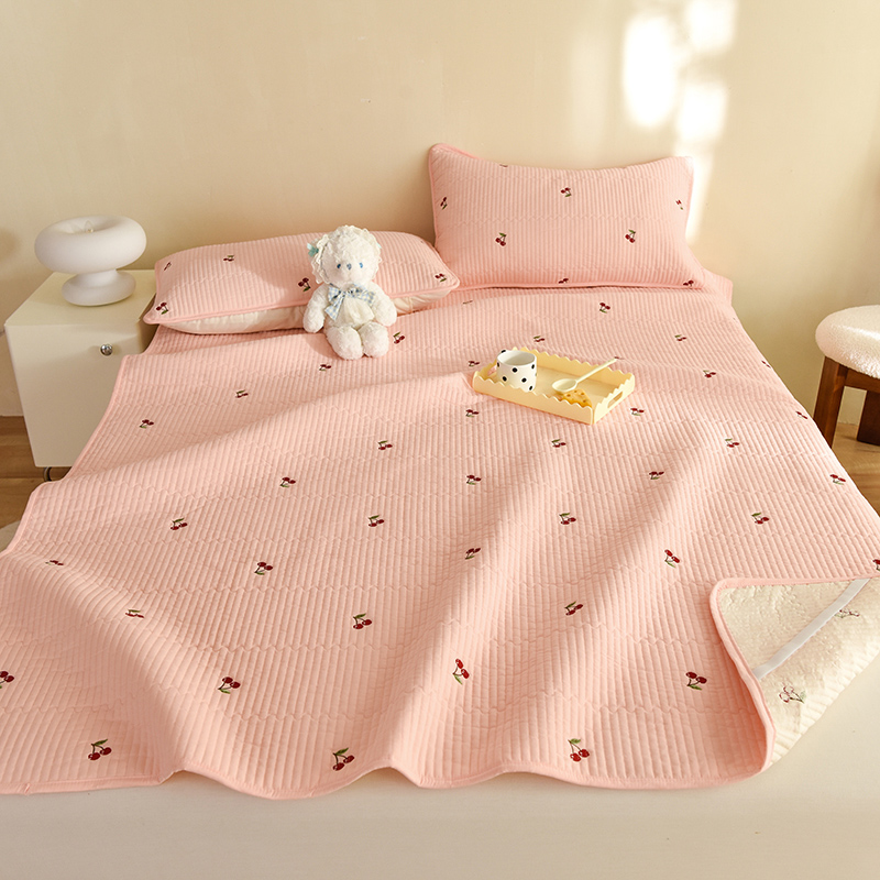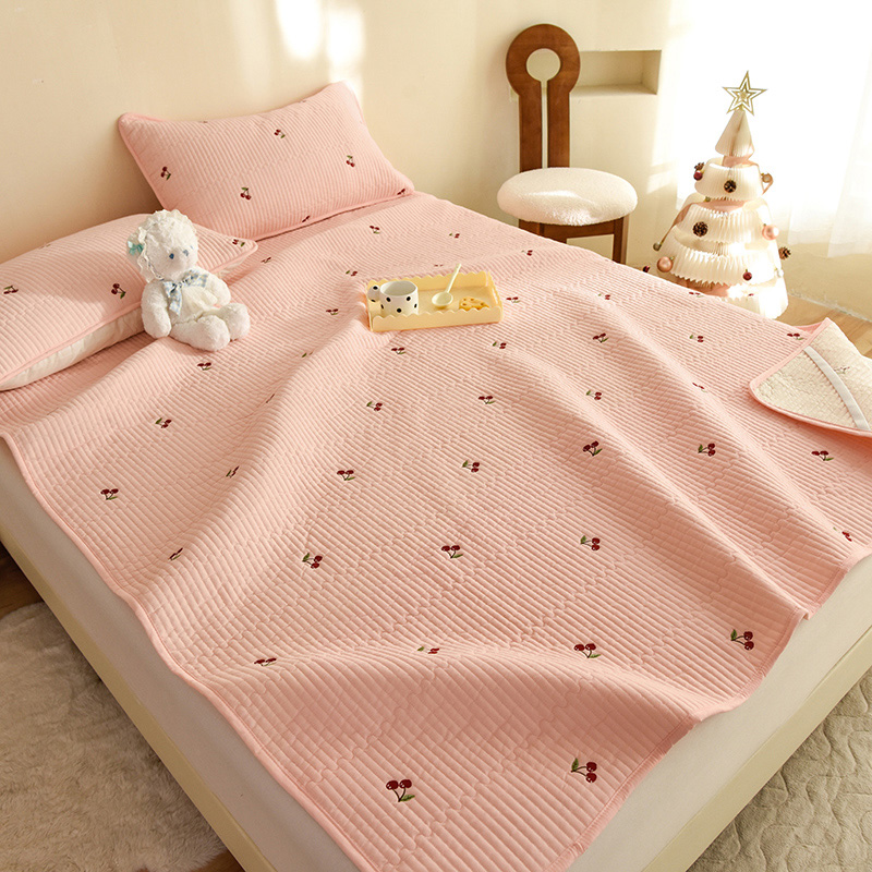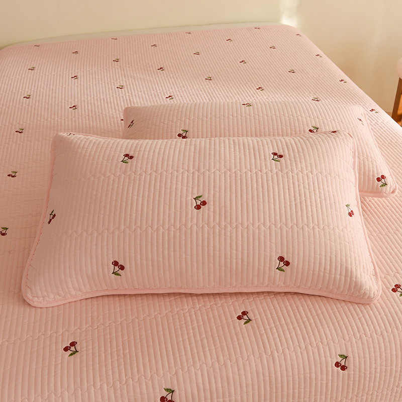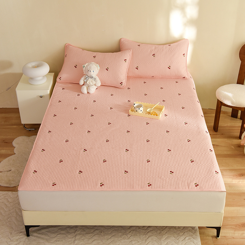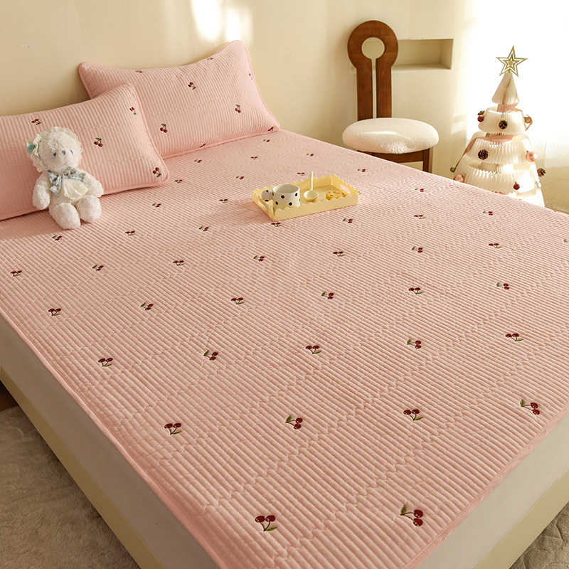 商品名称:美达家纺2025新品纯色刺绣水洗棉夹棉床垫 红颜樱桃-粉