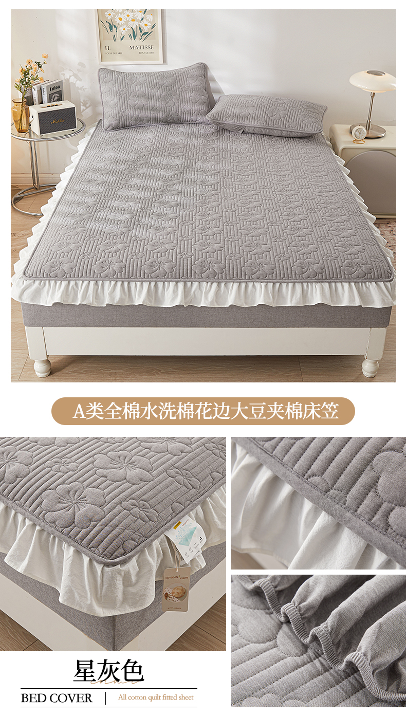 商品名称:3C 2024新款全棉大豆夹棉唯美花边床笠 星灰色