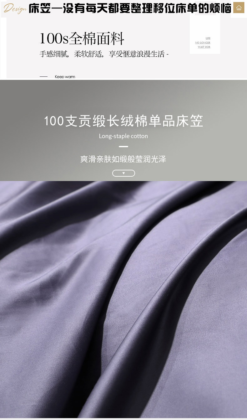 • 91家纺网 家纺一手货源 找家纺 晶缦家纺 2024新款100S全棉贡缎长绒棉纯色四件套和单品-纯沐系列 单床笠 纯沐-深度灰