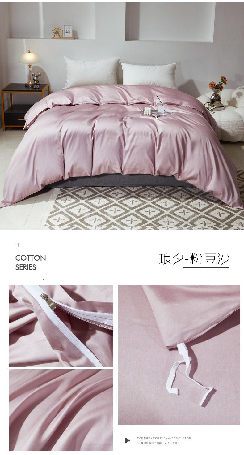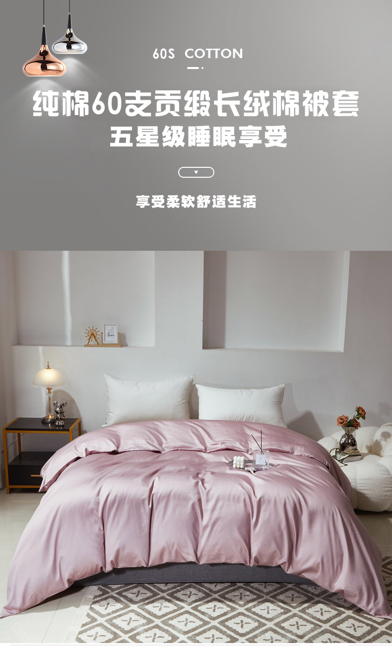 晶缦家纺 2024新款全棉60支贡缎长绒棉纯色多规格四件套和单品-琅夕系列 单被套 琅夕-粉豆沙