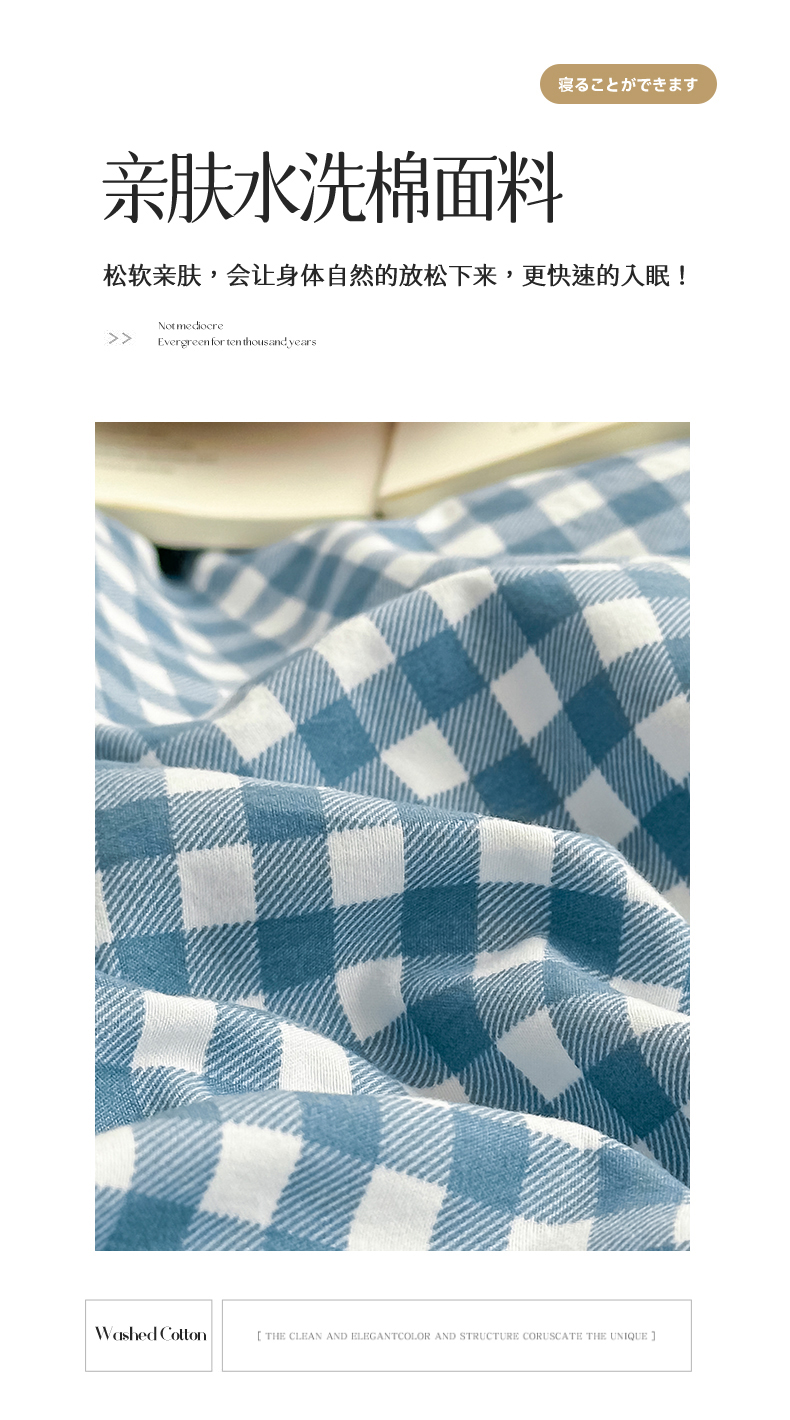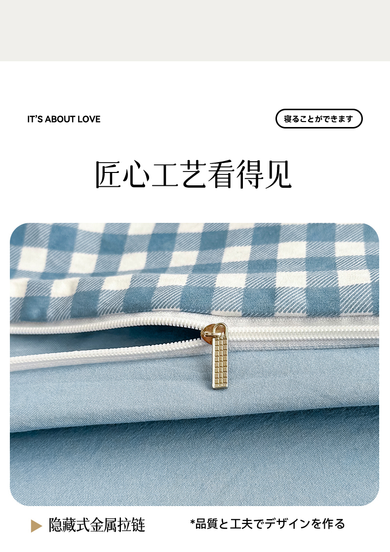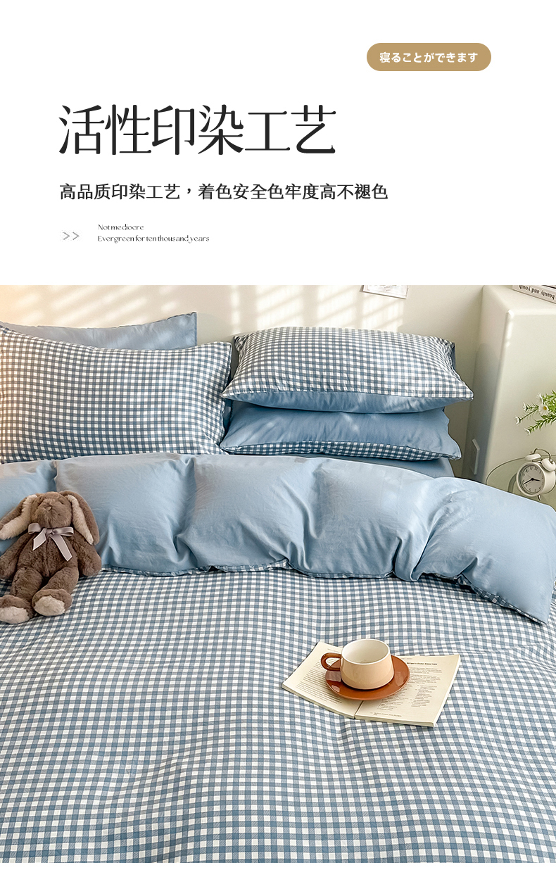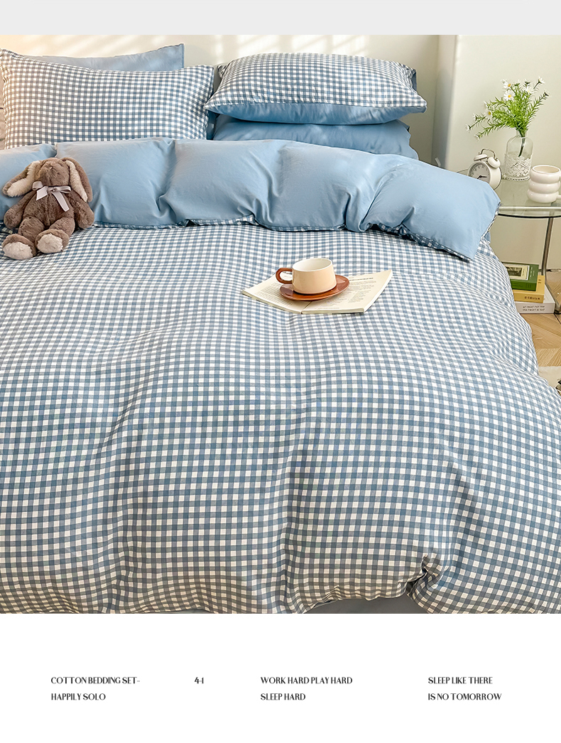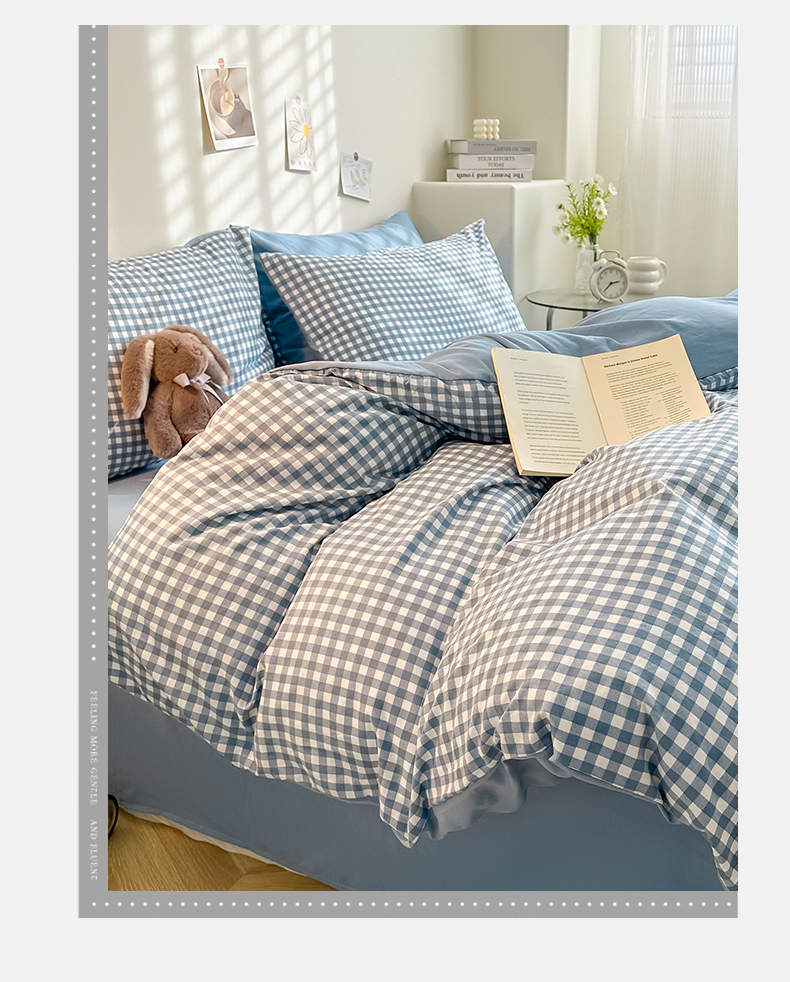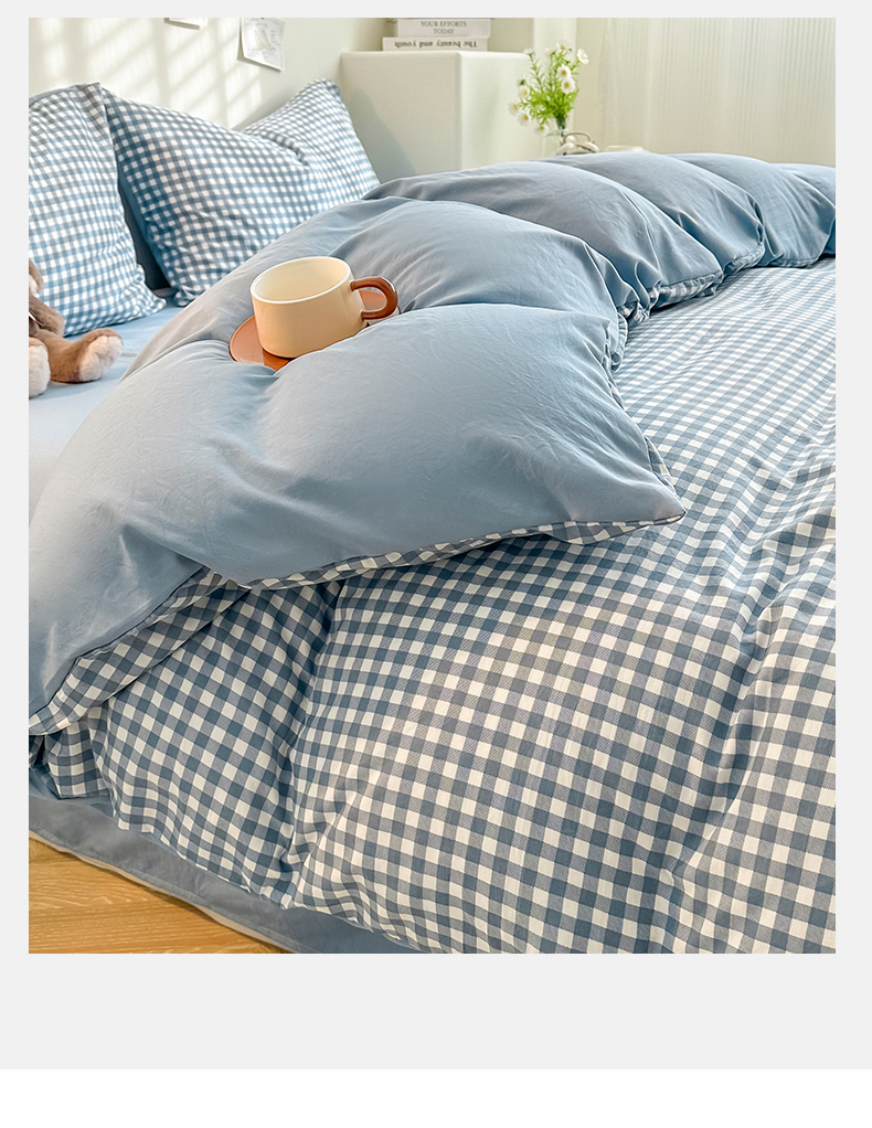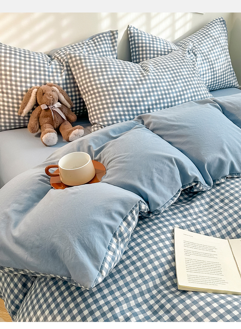 当前位置: 91家纺网 > 商品网购 > 床品套件 > 四件套 > 水洗棉四件套 > 古吉梦 2024新款水洗棉小清新印花格子系列四件套 G-小格-蓝+海青