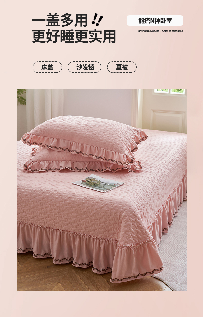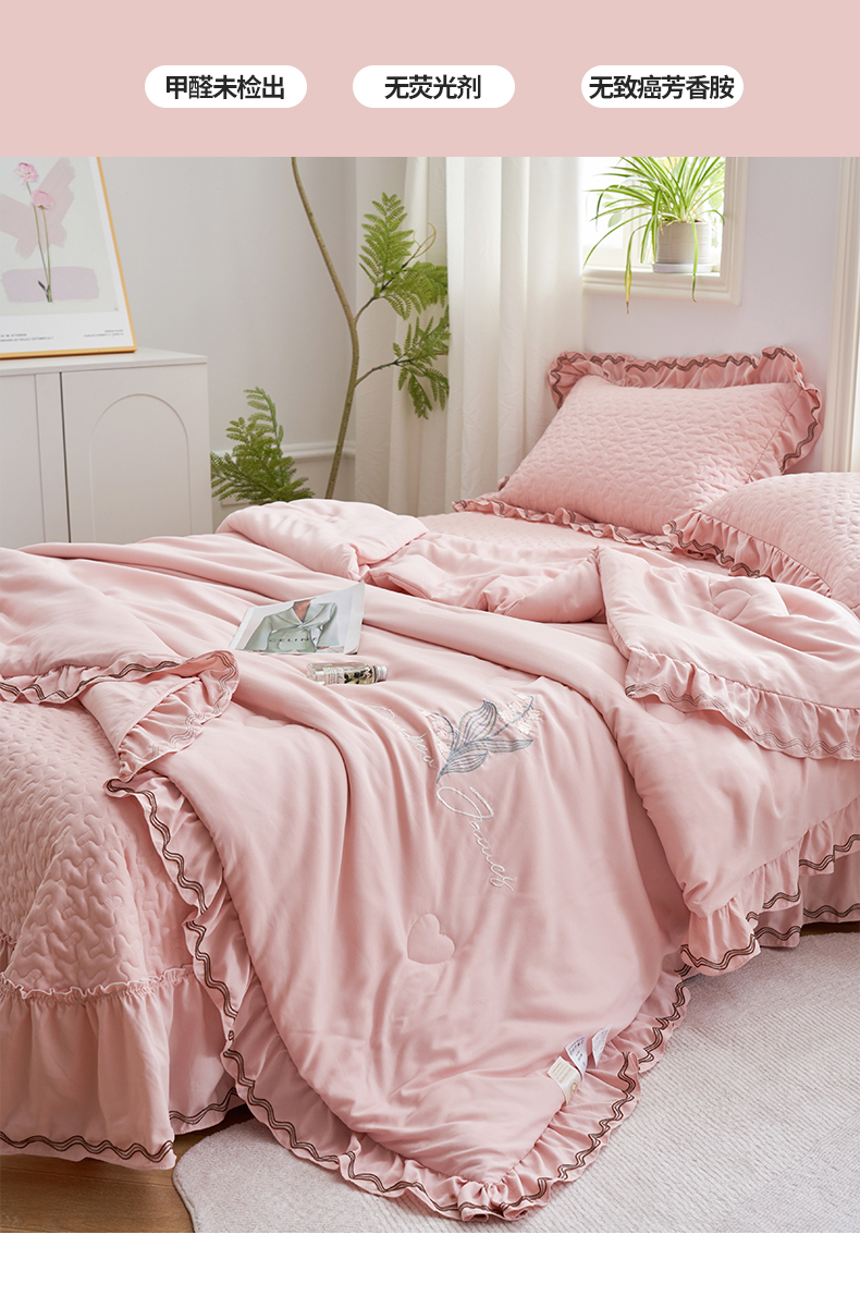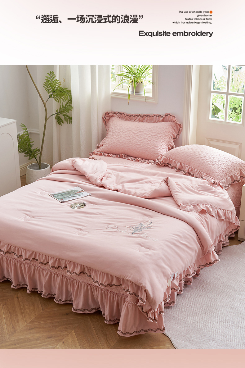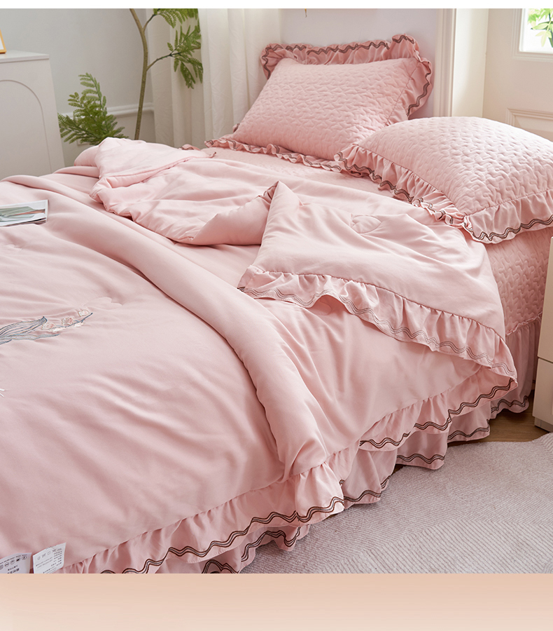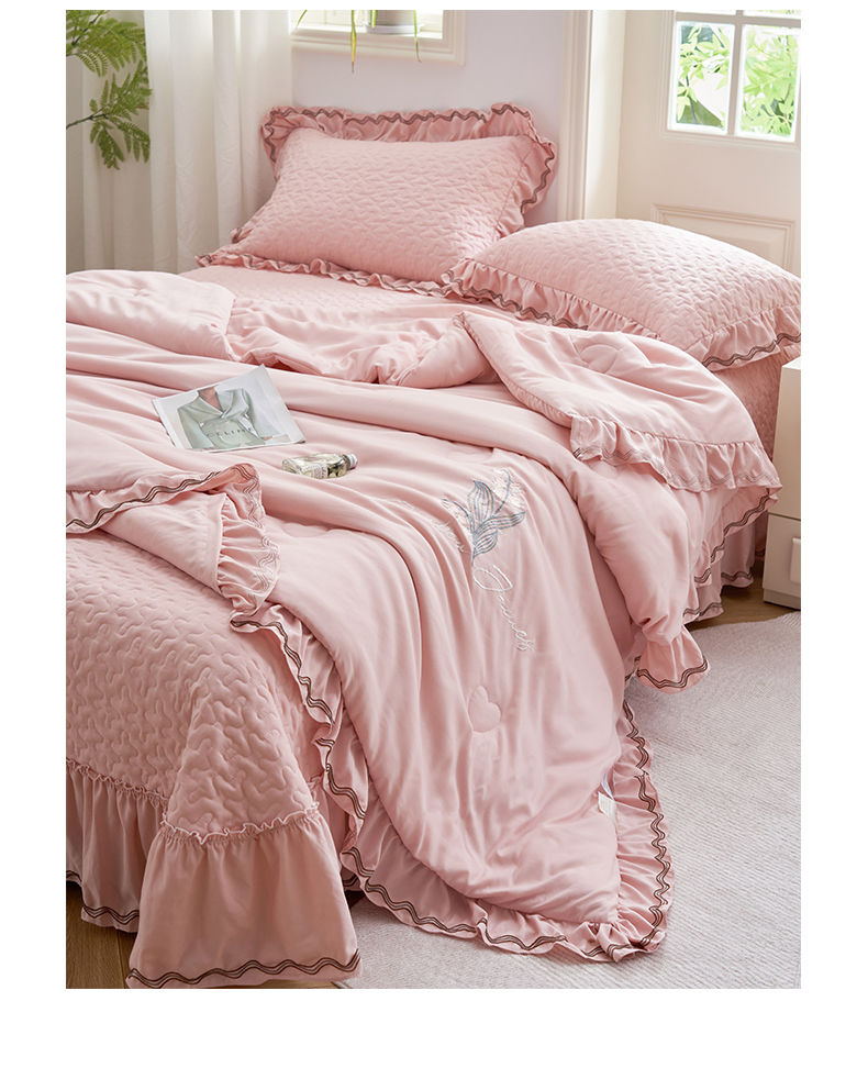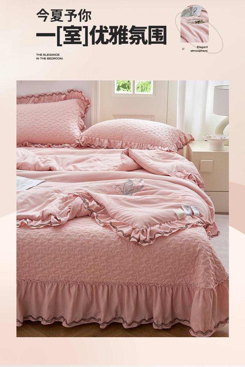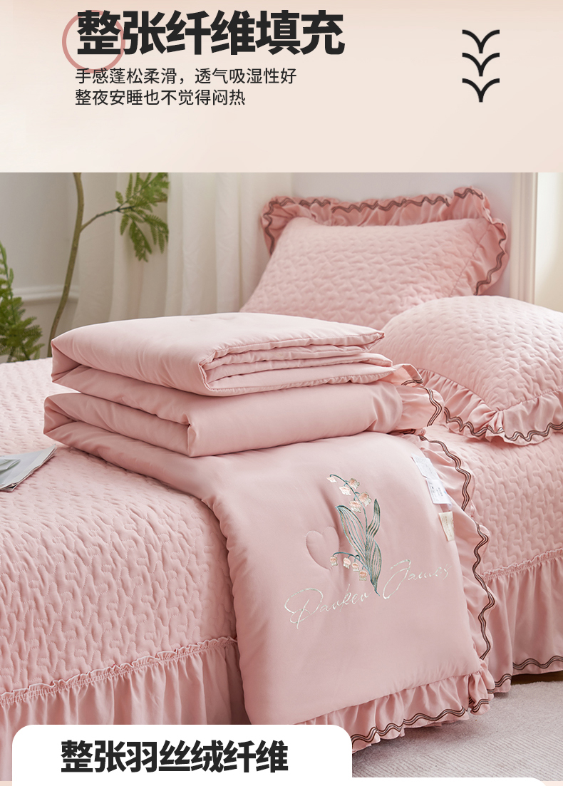 恒爱家纺 2024新款A类针织夹棉床盖款夏被四件套-玉玲珑 浅豆沙