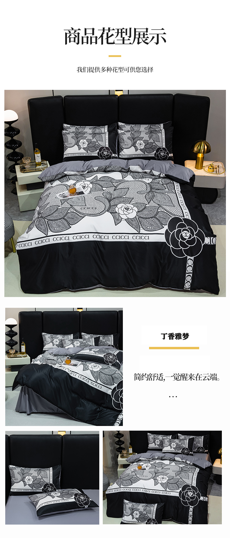 (总)色鬼布艺高端家居主号 2025新款轻奢亲肤纯棉数码印花网红热款四件套,豹纹香,白金V,白香花,大H,黑白迪,黑白V,灰迪,咖古,克莱因,慕斯小姐,山茶花,星空