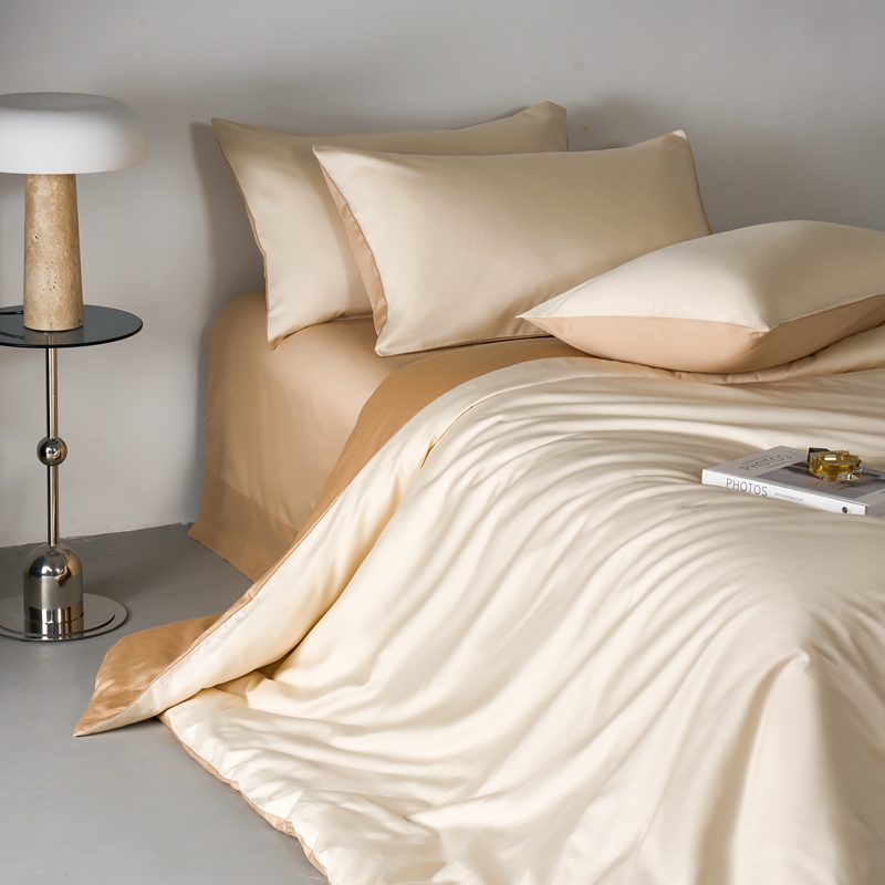 当前位置: 91家纺网 > 商品网购 > 床品套件 > 四件套 > 长绒棉四件套 > 秀色家纺 2025新款轻奢60支贡缎高支贡缎长绒棉全棉四件套简约纯色床上被套床单床笠式 米朵-奶昔白香槟金