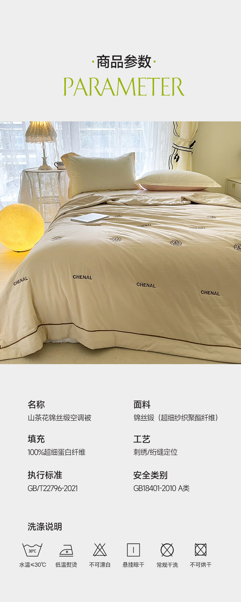 商品名称:被靠被2024新款锦丝缎空调夏被-山茶花 岚烟黄