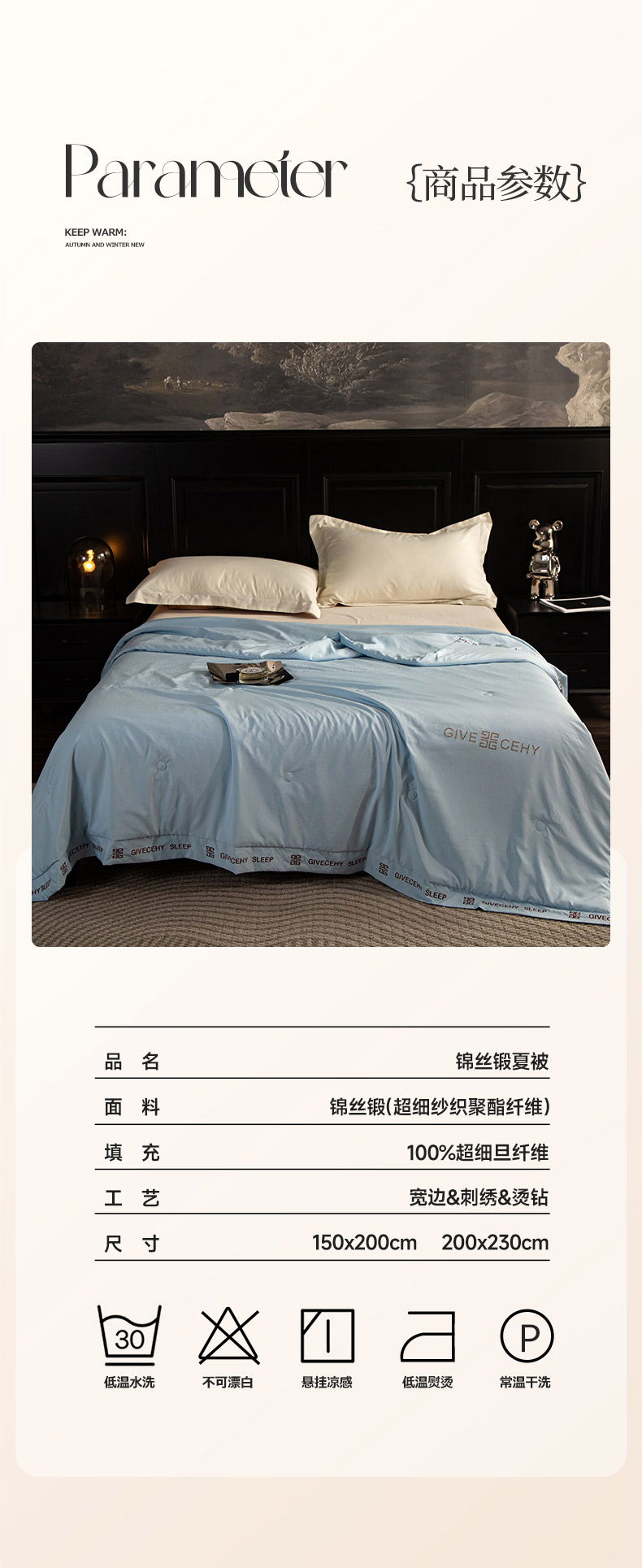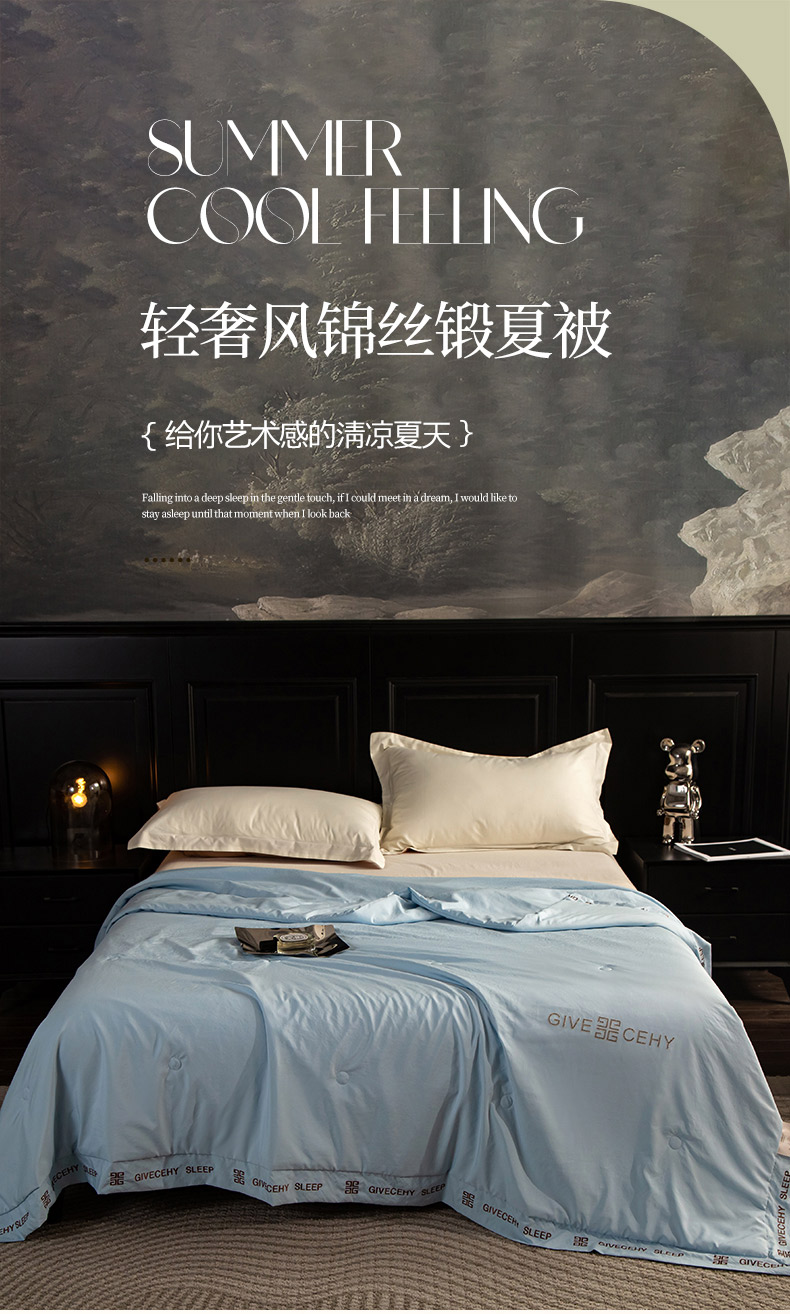 商品名称:被靠被2024新款锦丝锻夏被-赫拉 浅蓝
