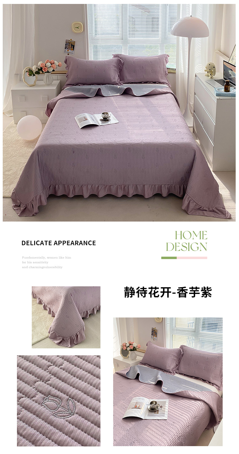 (总)胜权家纺 2025秋冬新款A类全消光高克重5D雕花牛奶绒仙女风夹棉床盖单品系列,梦安娜-湖蓝,梦安娜-靓紫,梦安娜-嫩粉,梦安娜-浅米