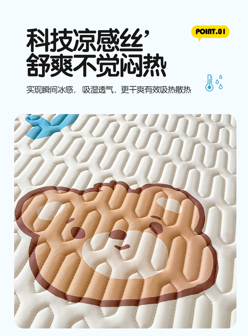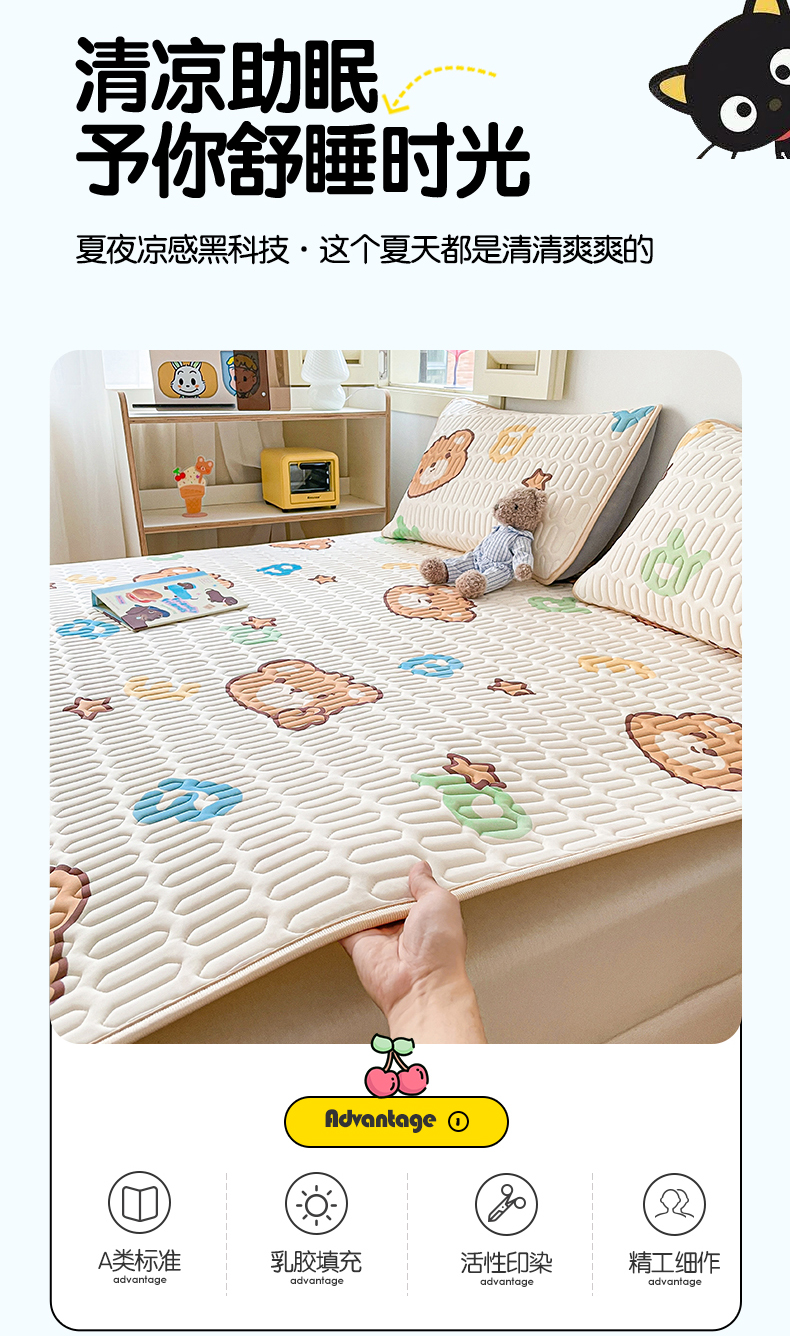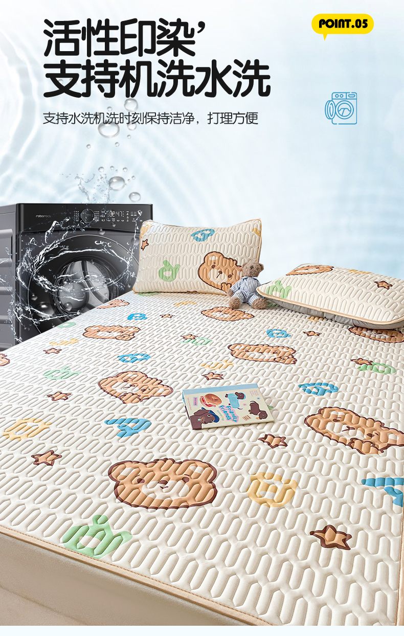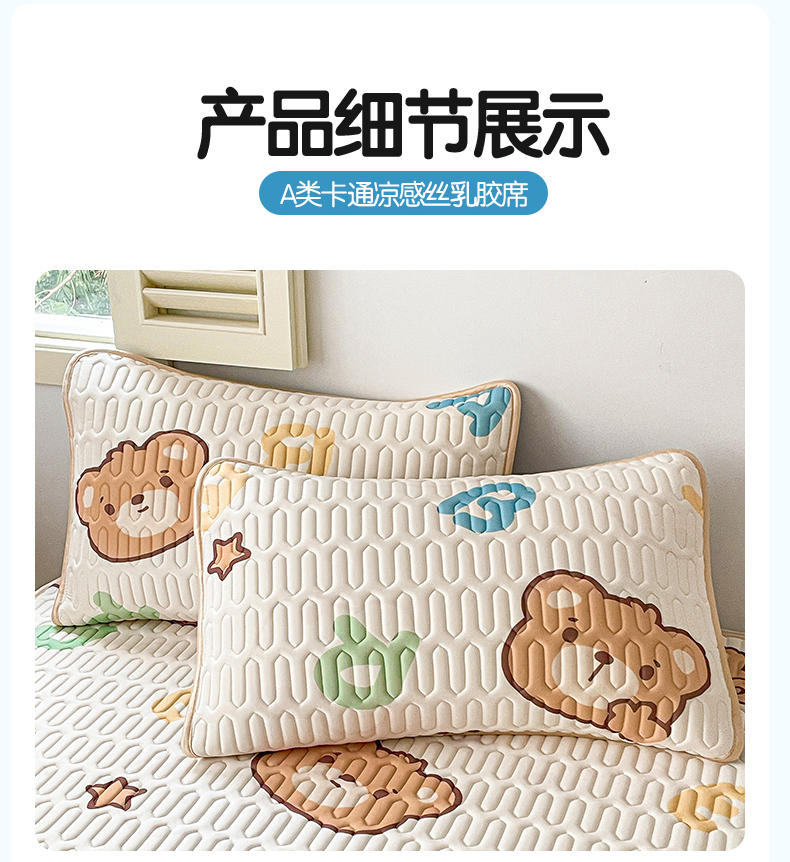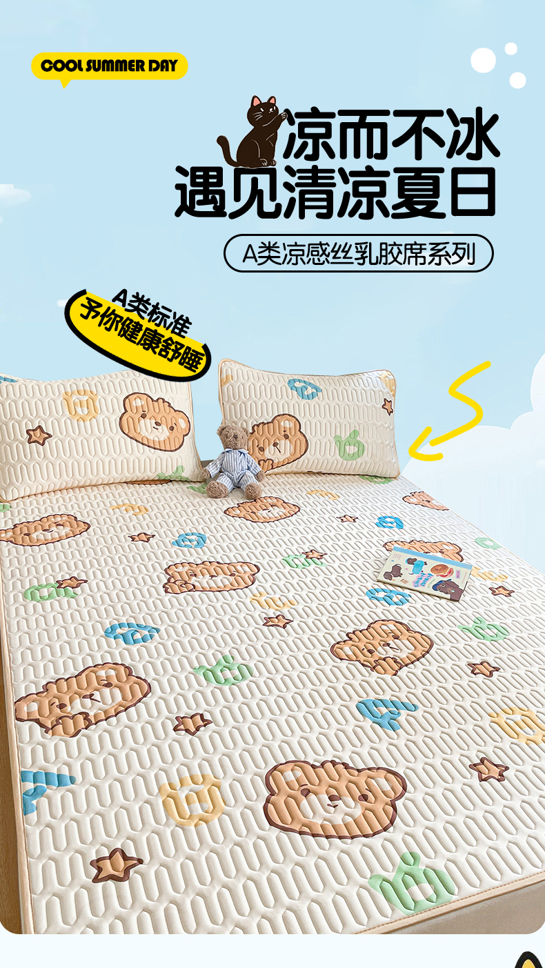商品名称:布卢姆床垫 2025新款A类凉感丝数码印花小版乳胶凉席5mm 字母小熊