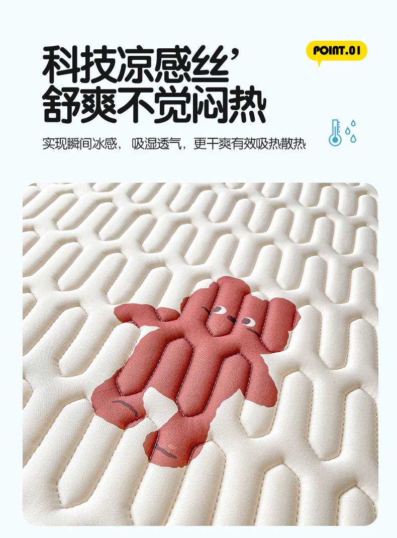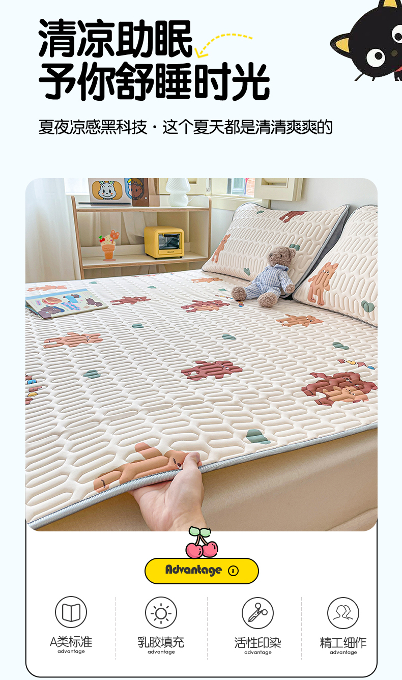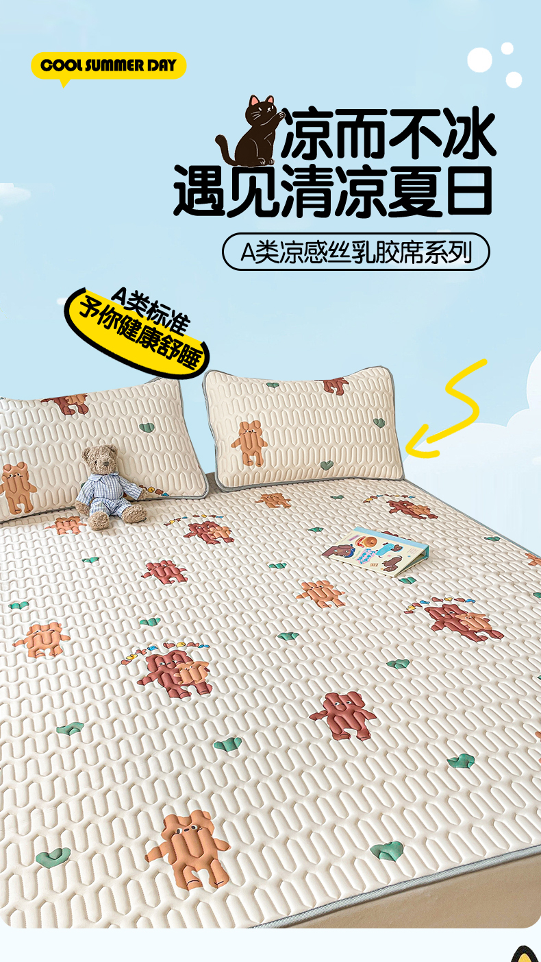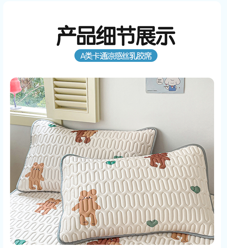 商品名称:布卢姆床垫 2025新款A类凉感丝数码印花小版乳胶凉席5mm 爱心熊