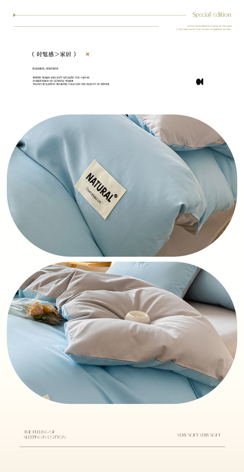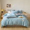 • 91家纺网 家纺一手货源 找家纺 芊寻家居 2024新款13372全棉纯色四件套无印良品风简约套件 海青-浅灰