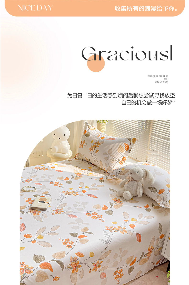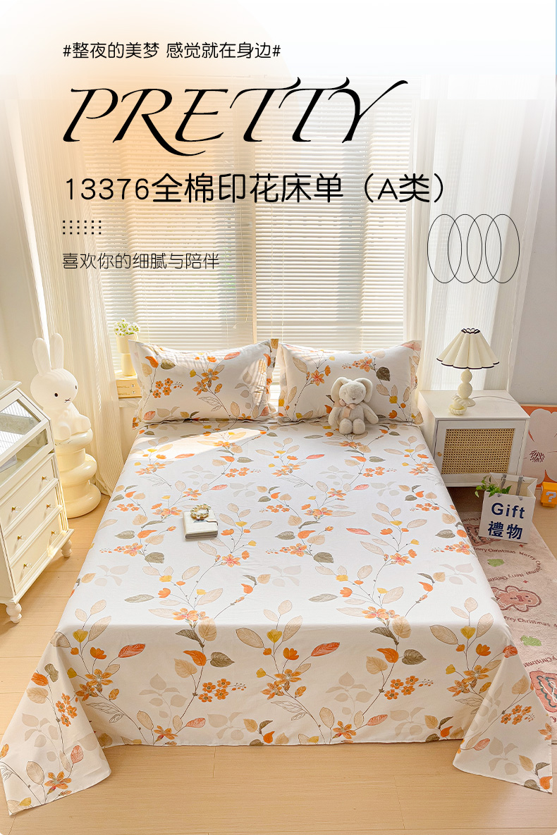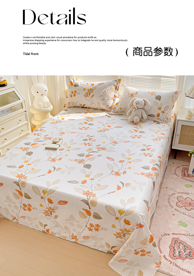 商品名称:大柏树 2025新款全棉13376印花四件套系列(可定制)-单床单 浅花悠悠
