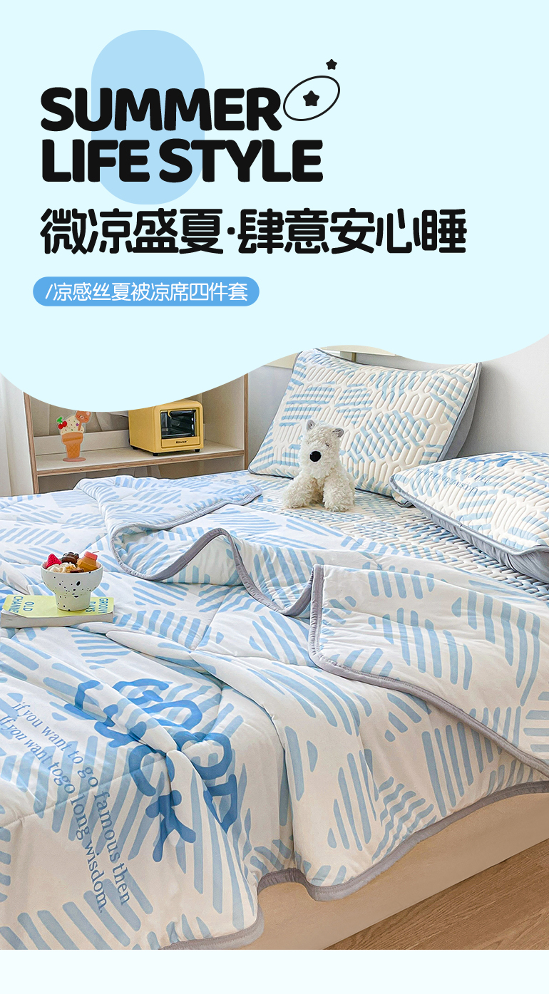 当前位置: 91家纺网 > 商品网购 > 床品套件 > 四件套 > 夏被四件套 > 布卢姆床垫 2025新款A类凉感丝数码印花夏被凉席四件套 几何