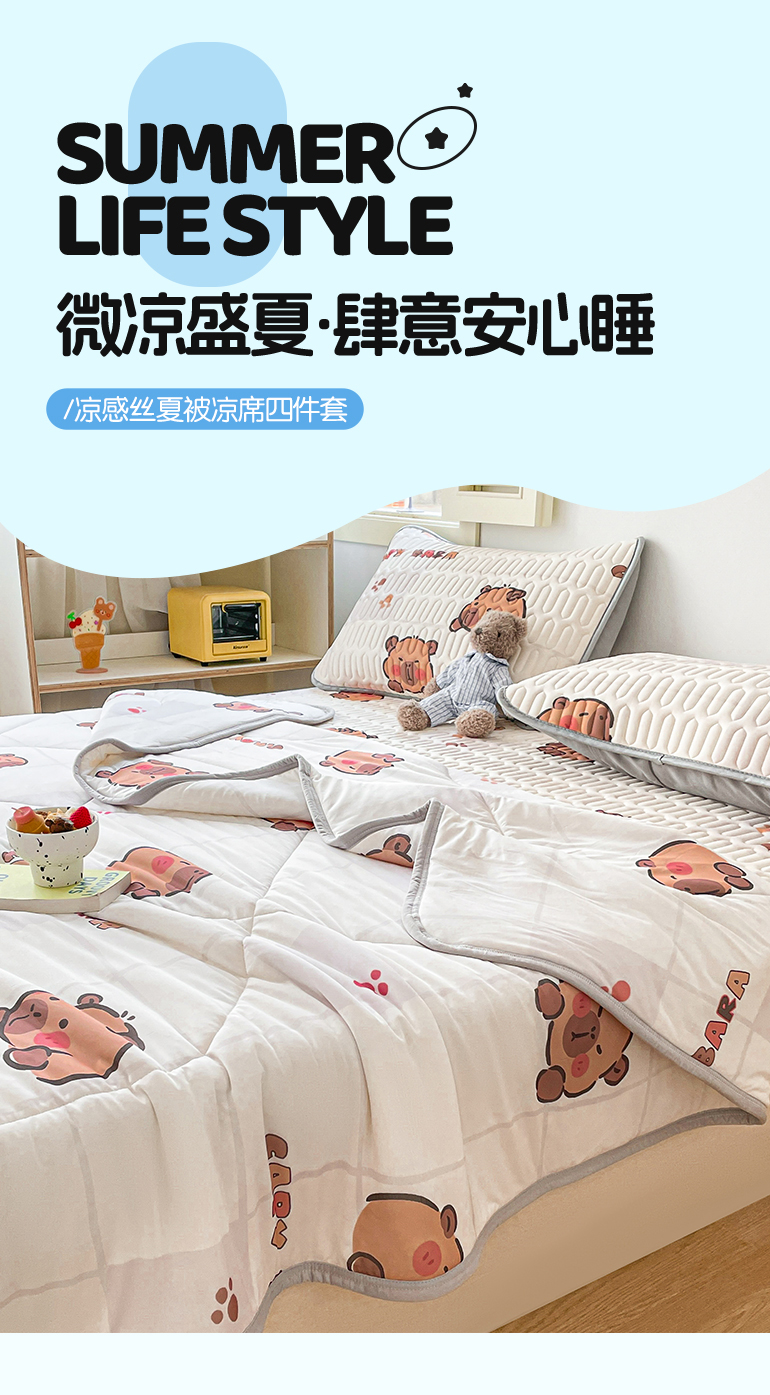 当前位置: 91家纺网 > 商品网购 > 床品套件 > 四件套 > 夏被四件套 > 布卢姆床垫 2025新款A类凉感丝数码印花夏被凉席四件套 顽皮猪