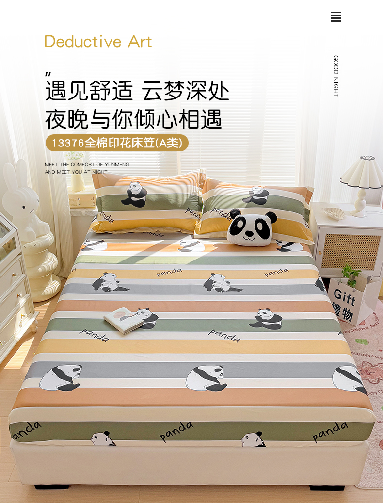 • 91家纺网 家纺一手货源 找家纺 大柏树 2025新款全棉13376印花四件套系列(可定制)-单床笠 功夫熊